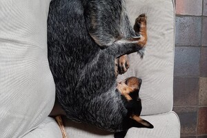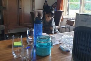 Hij ligt altijd bij me nu, ook in de keuken. Van de week stond hij ineens boven aan de trap, zo van, kom we gaan naar bed.