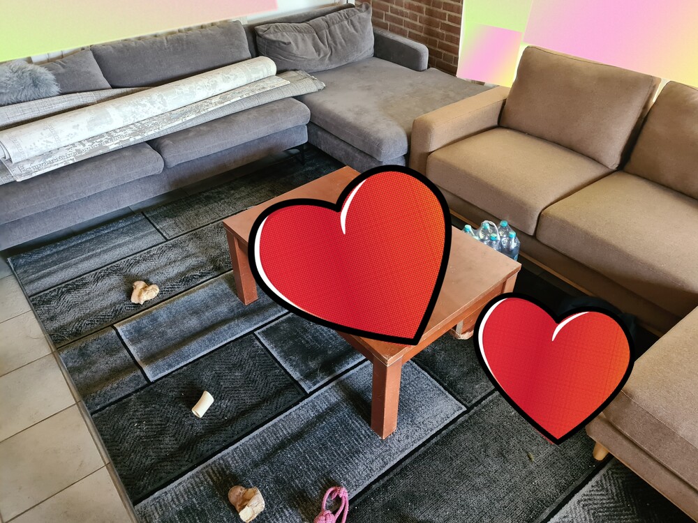 29 juli: waar is de hond? We zijn bezig om onze woonkamer te stylen, ander tapijt, salontafel, bankstel bijvoorbeeld.