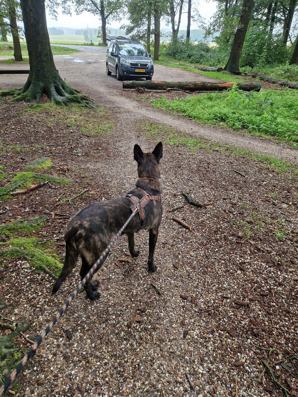 Bucky: netjes uitgelaten voor de les, zit ze nog te kakken op de hondenschool