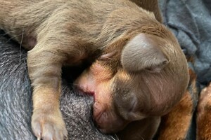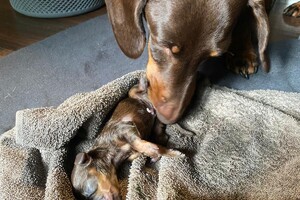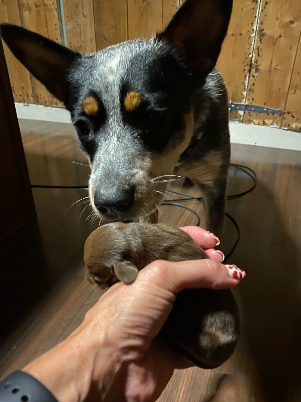 Kreeg de ademhaling niet goed op gang, ik heb dat betreft een super teckel, moeder van alle dieren - Kleintje ademt nu.