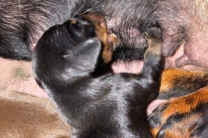31 augustus: nummer vier, een zwart reutje is geboren, helaas is die meteen over de regenboogbrug gegaan. Hij kwam en stuit en waarschijnlijk is de navelstreng vroegtijdig gebroken. Ik moet heel even op adem komen, ik vindt dit zo verdrietig.