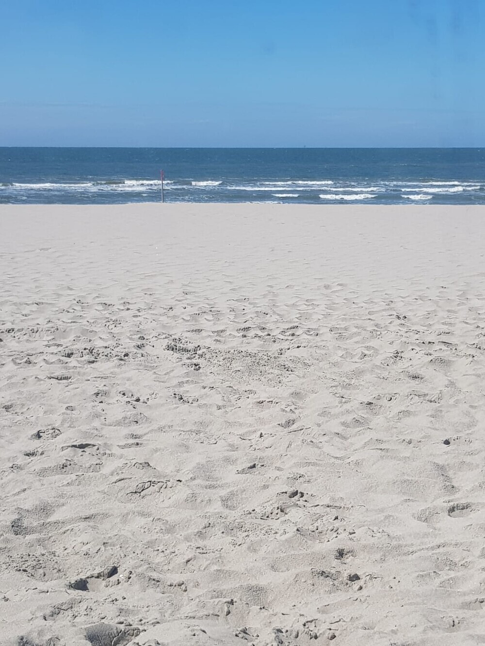 Heerlijk aan zee, maar was mijn vriendin Yvonne kwijt: wat een mist bij de zee.