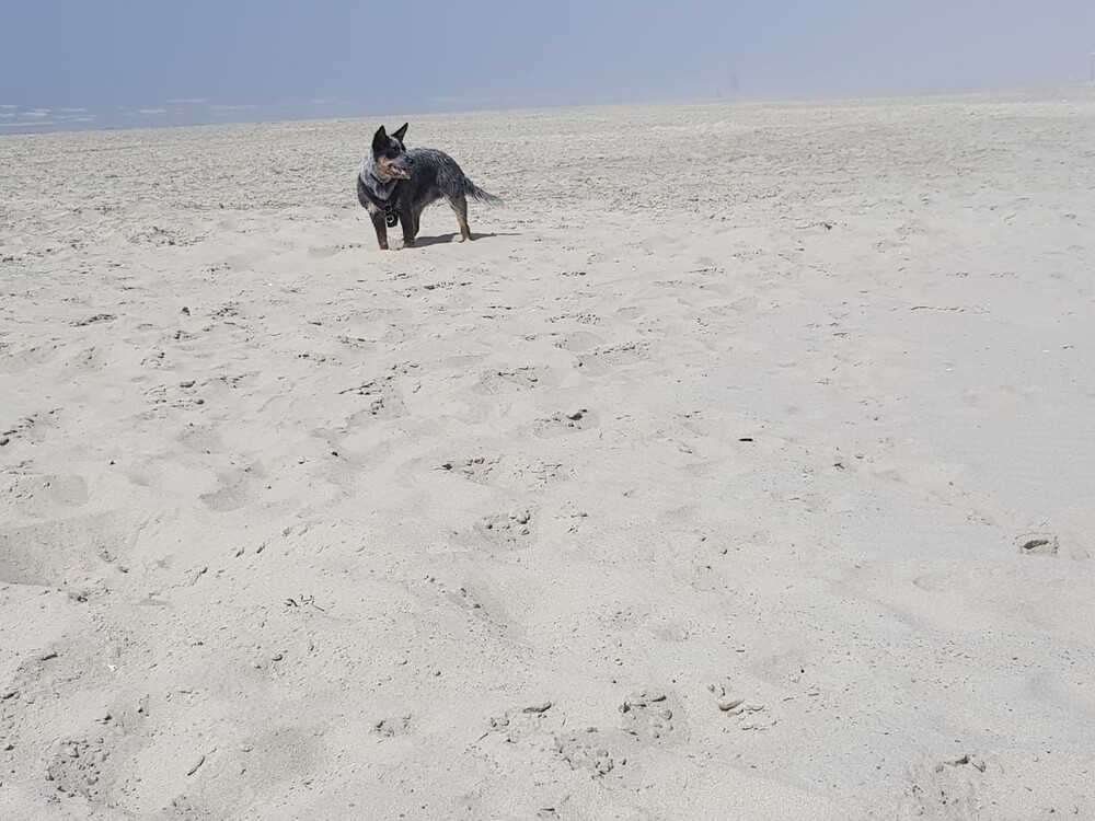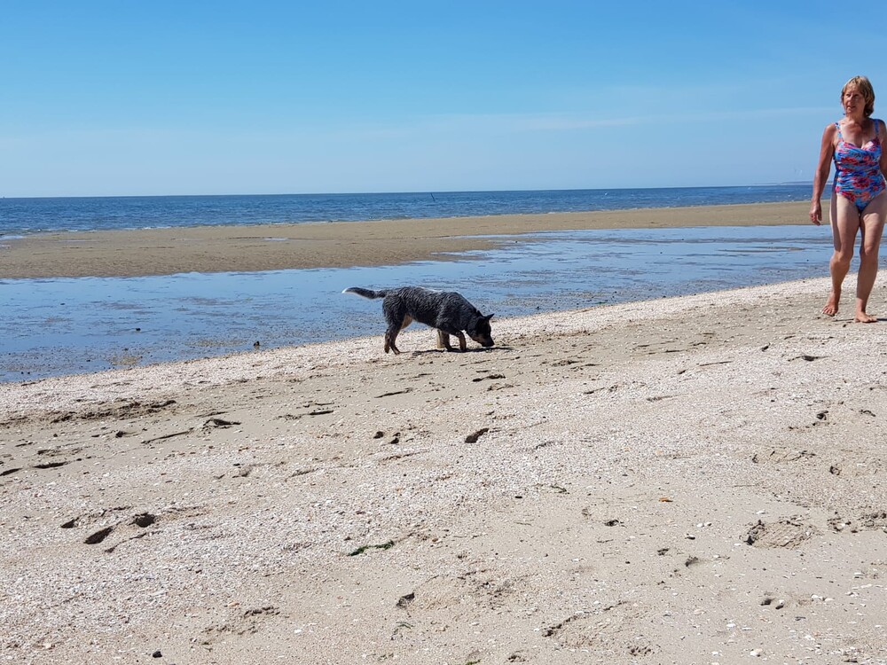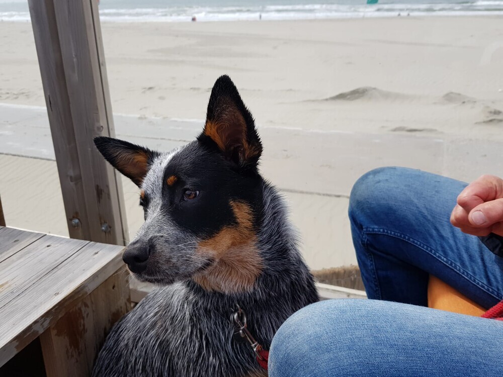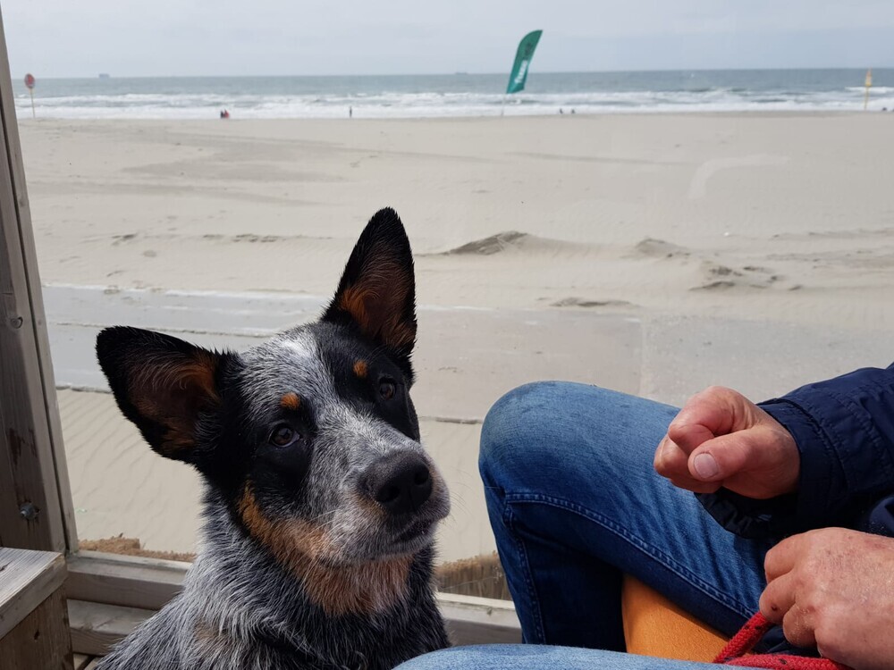 5 juni: Ik ben een Australische cattle dog, geen zee te hoog, oftewel geen golf te hoog. Ik ben een echte bikkel.