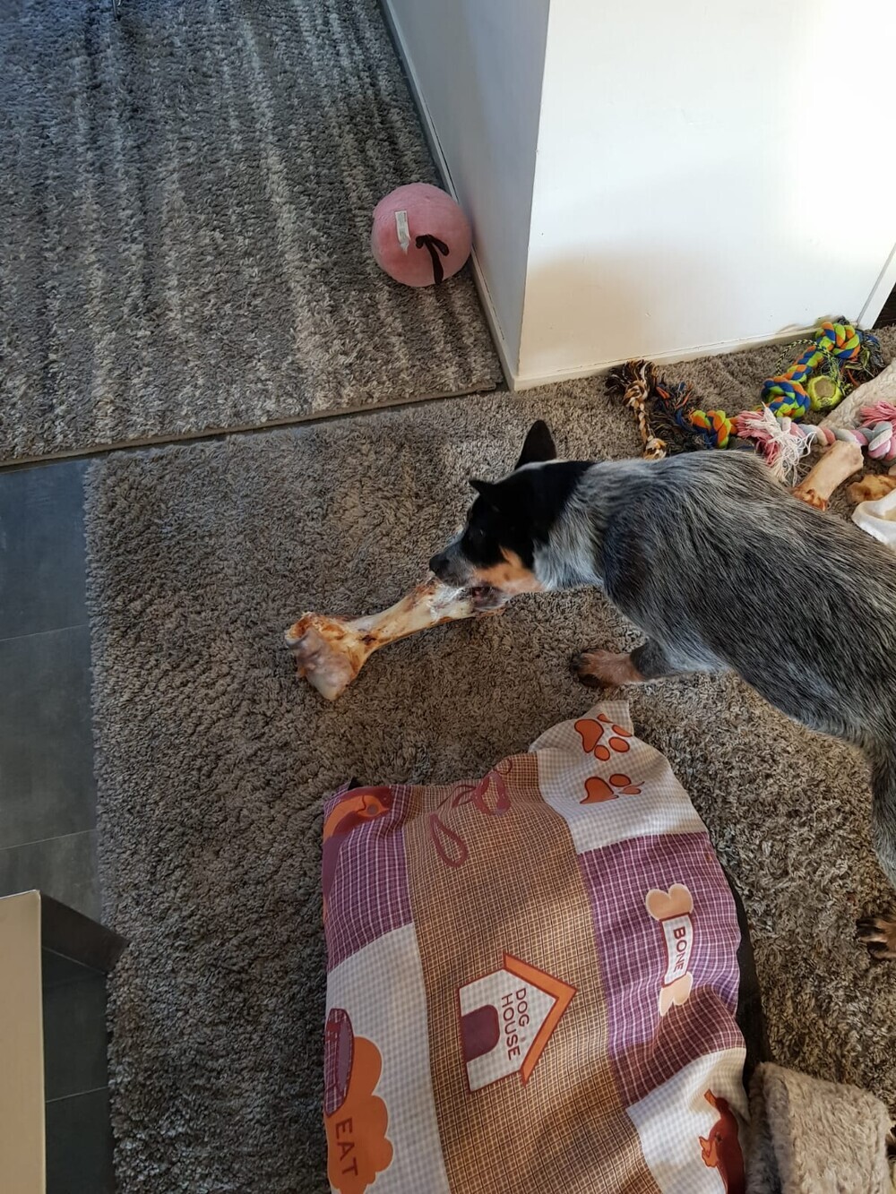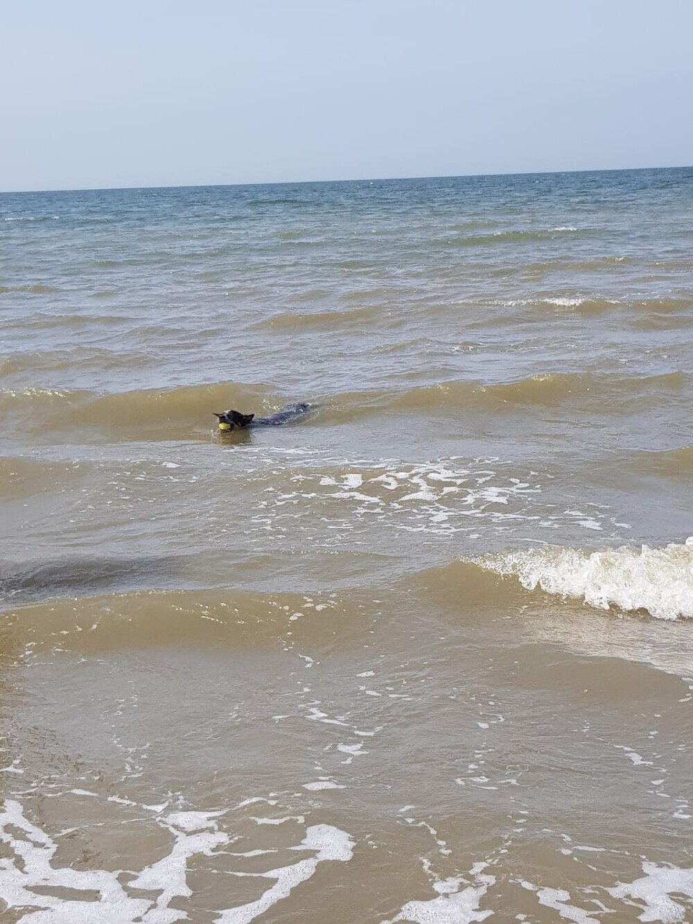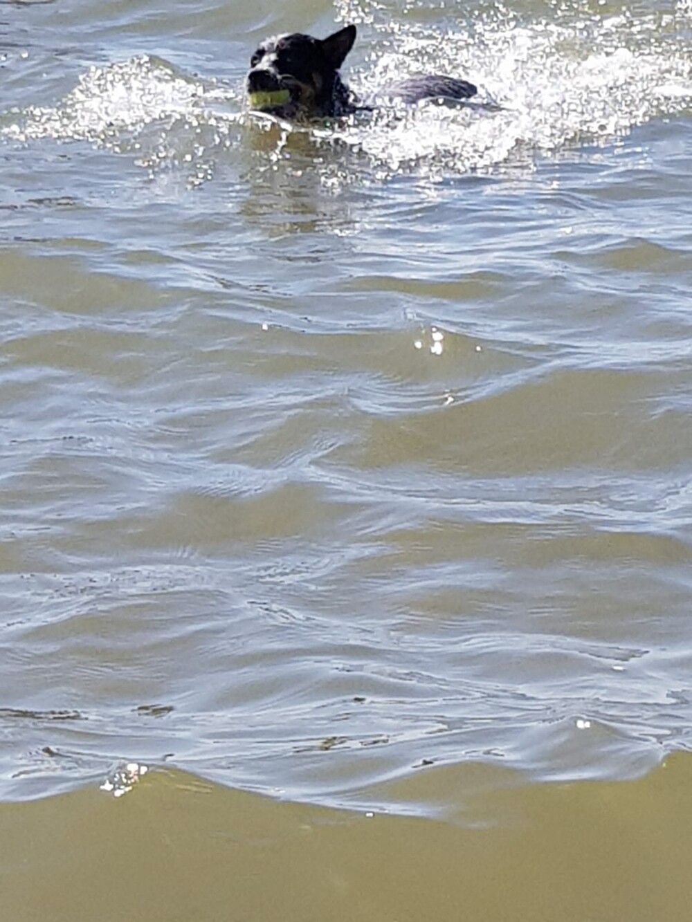 5 juni: Ik ben een Australische cattle dog, geen zee te hoog, oftewel geen golf te hoog. Ik ben een echte bikkel.
