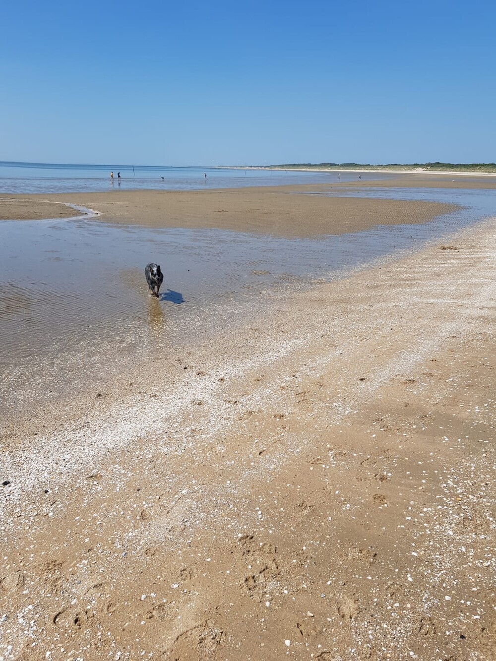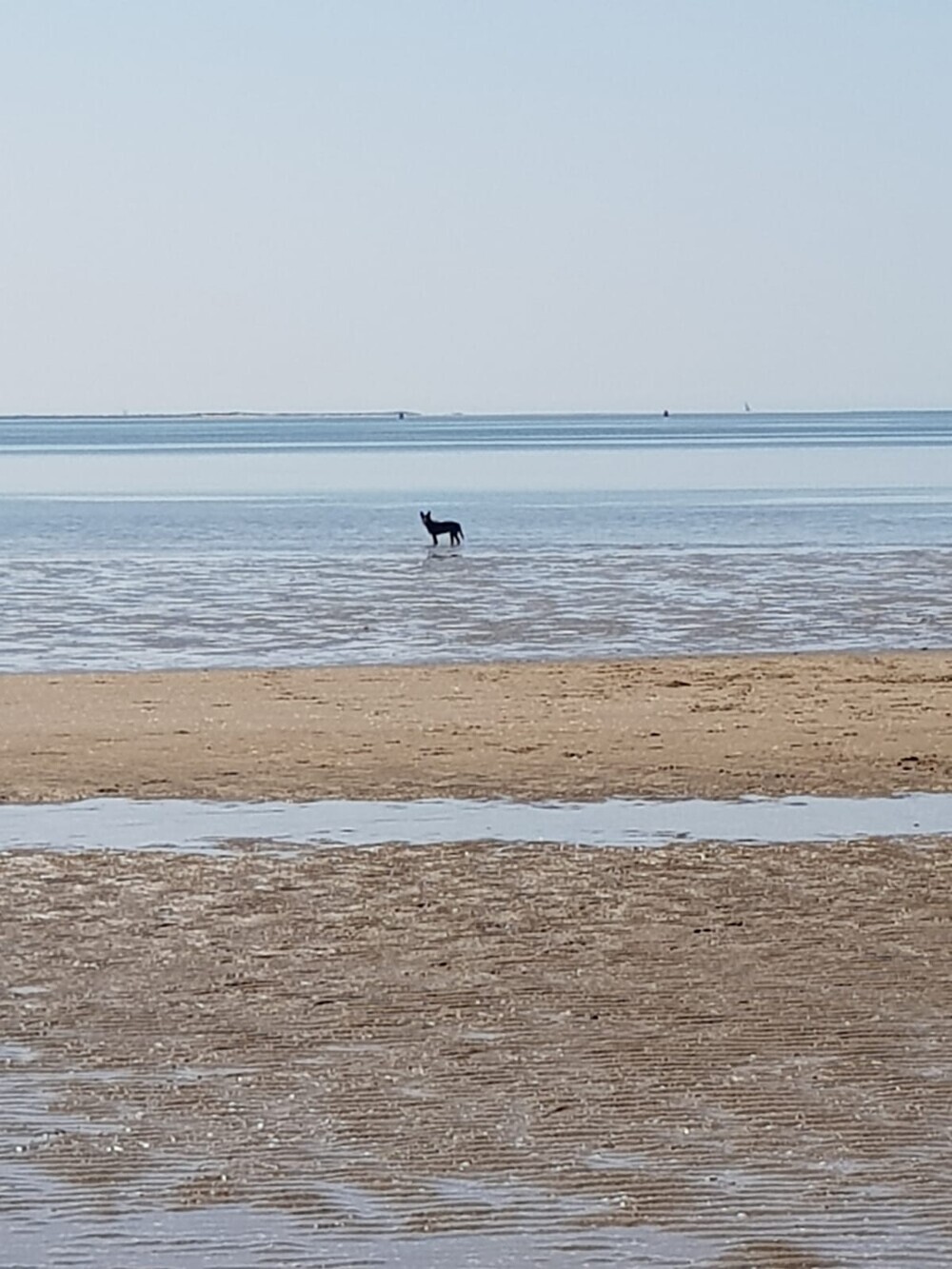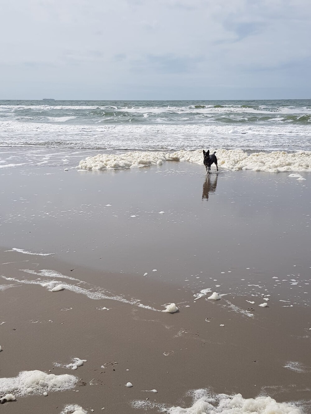 Vanmiddag ging het prima en wordt elke dag leuker. Ik heb vanmiddag fluit geprobeerd, op het strand, dus nog nooit eerder fluit geprobeerd: Ava Kira, staat aan zee, ik zeker 50 meter verder en ik fluit, Ava Kira komt op me af, vlak voor mijn neus zit en lie down, PERFECT!