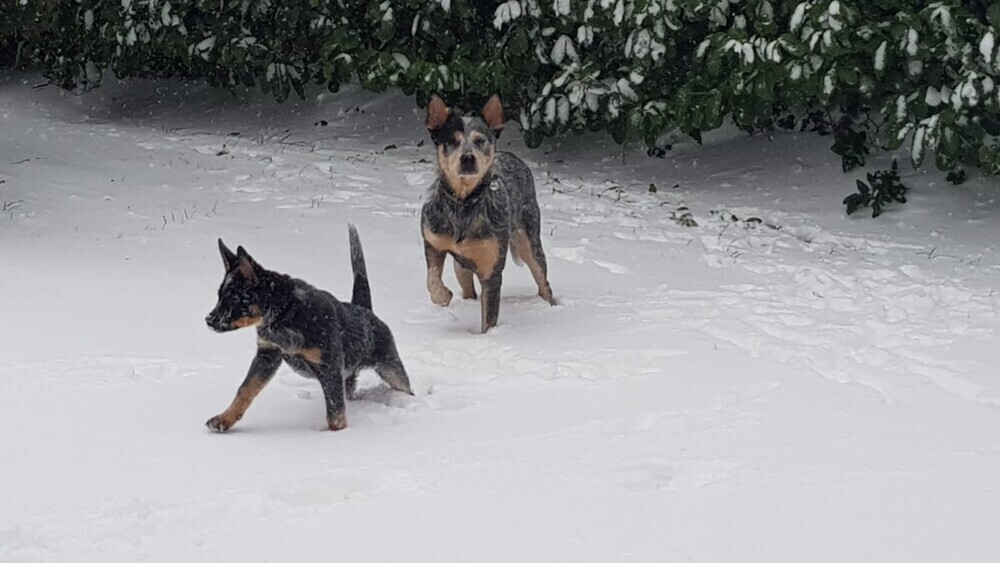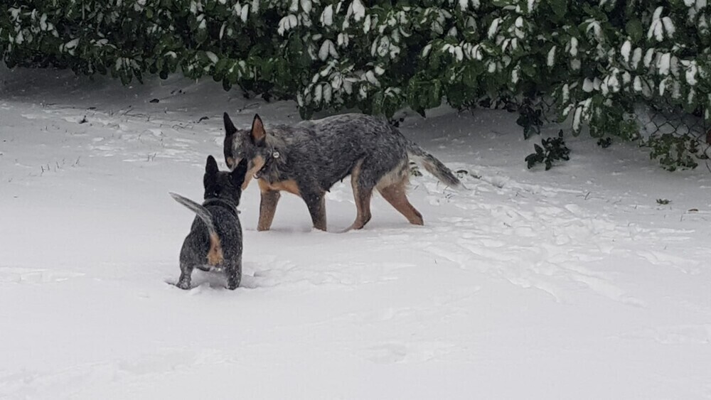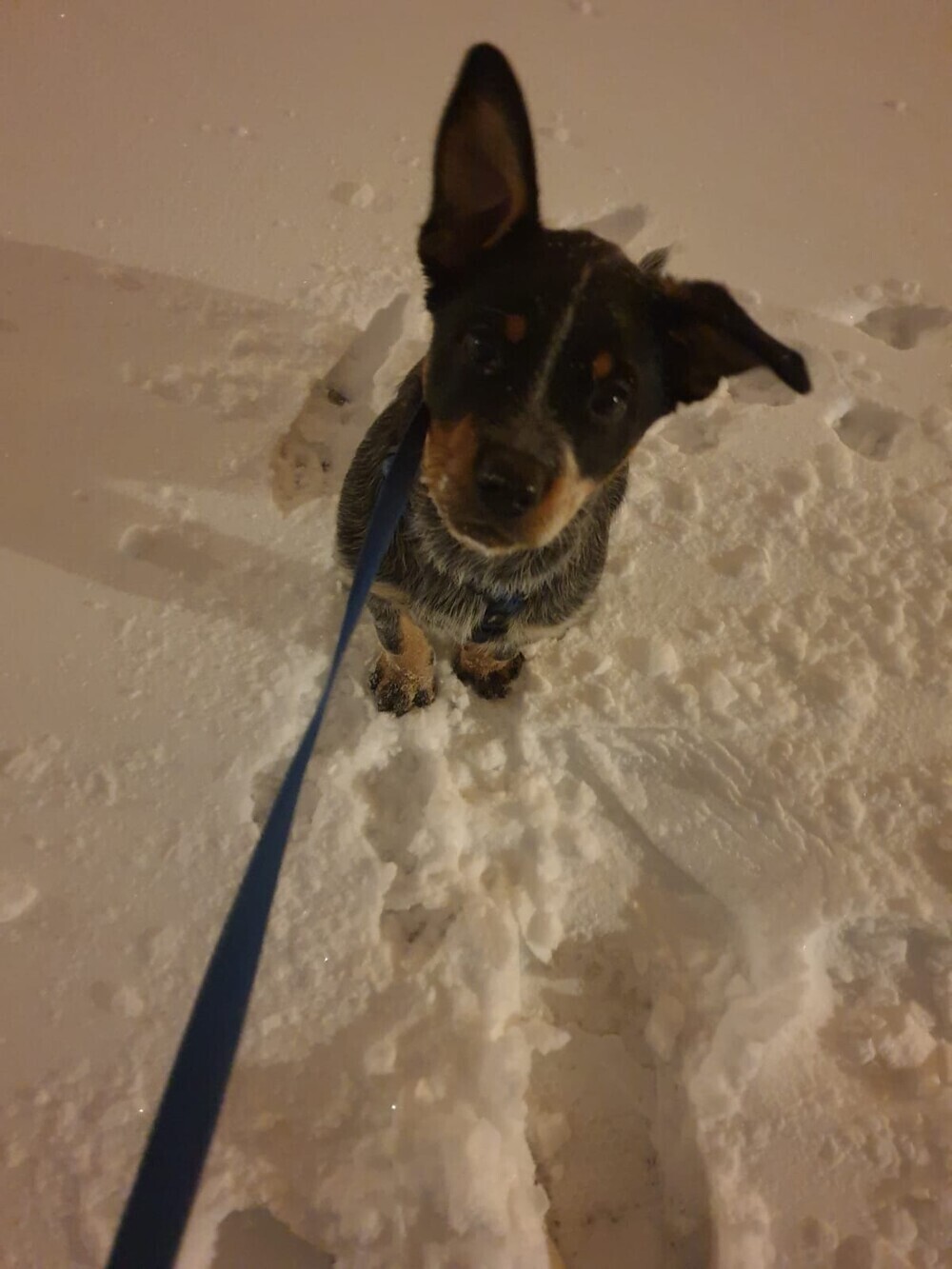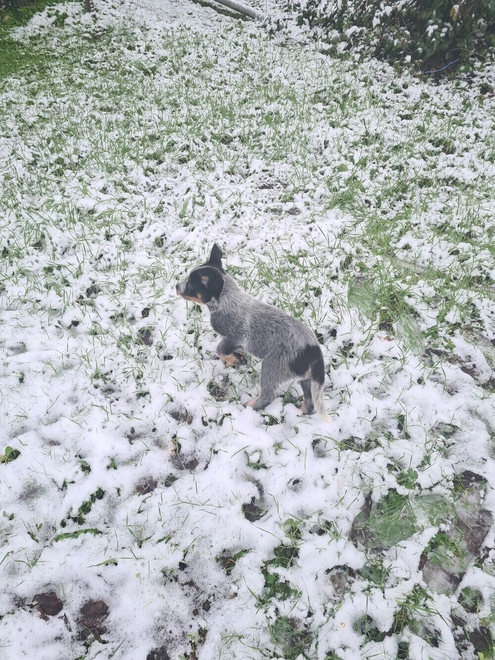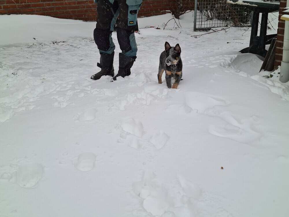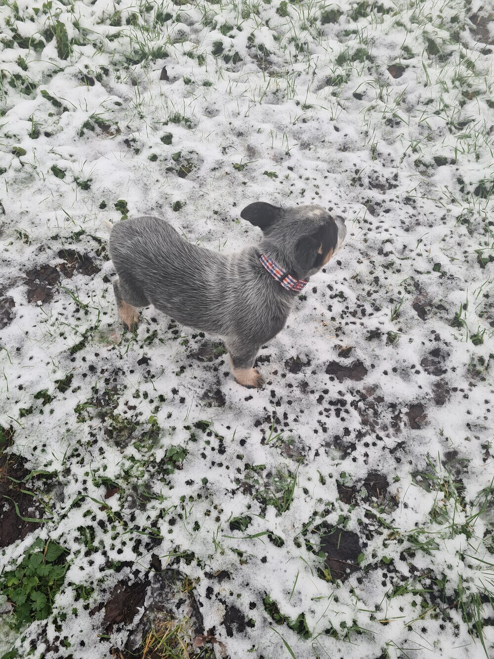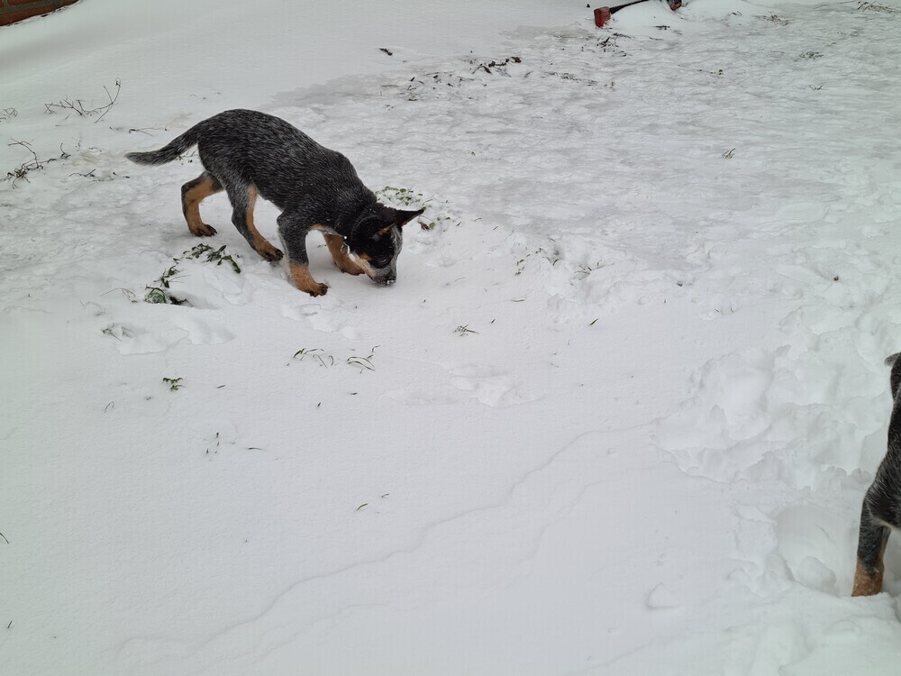 17 januari, na de dag dat de puppy's het thuis verlieten en naar nieuwe eigenaar gingen: we hadden sneeuw! - Izzy Bella Donna is op deze dag opgehaald, dus we hebben van te voren in de sneeuw gespeeld bij ons thuis.