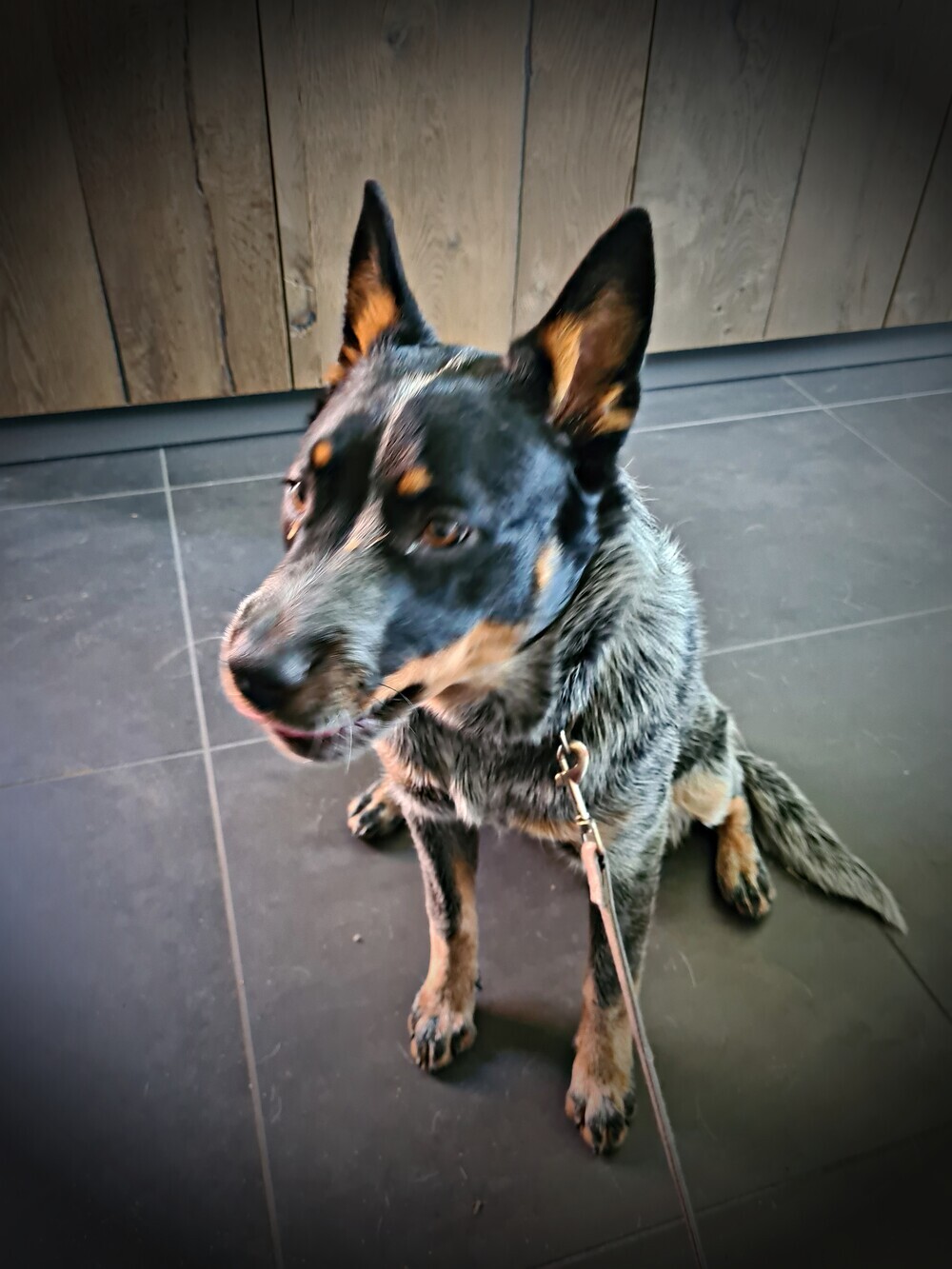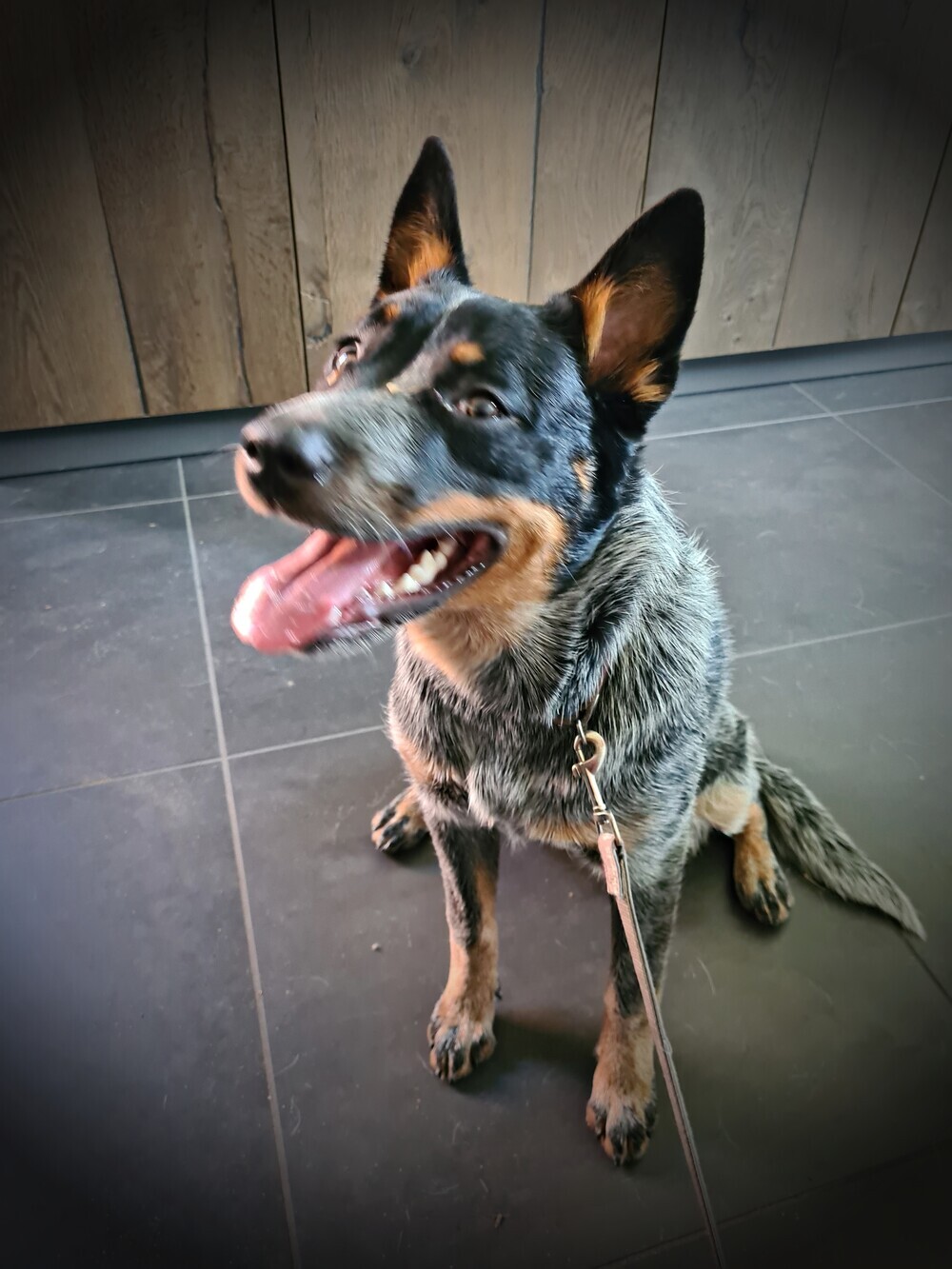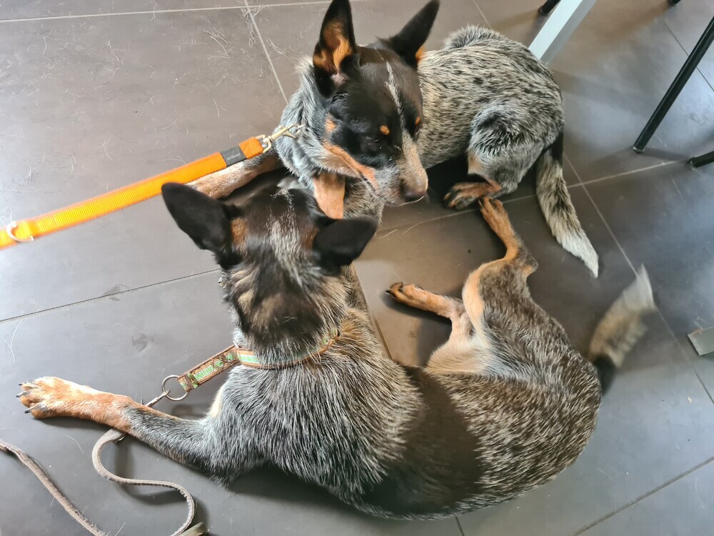 Ging goed, ze reageerde ook goed op de werknemers daar en ze stond zo op hun buiten tafel - het blijft wel een cattle dog - Volgende keer mag ze in een groep en mag ze dus spelen met de andere honden.