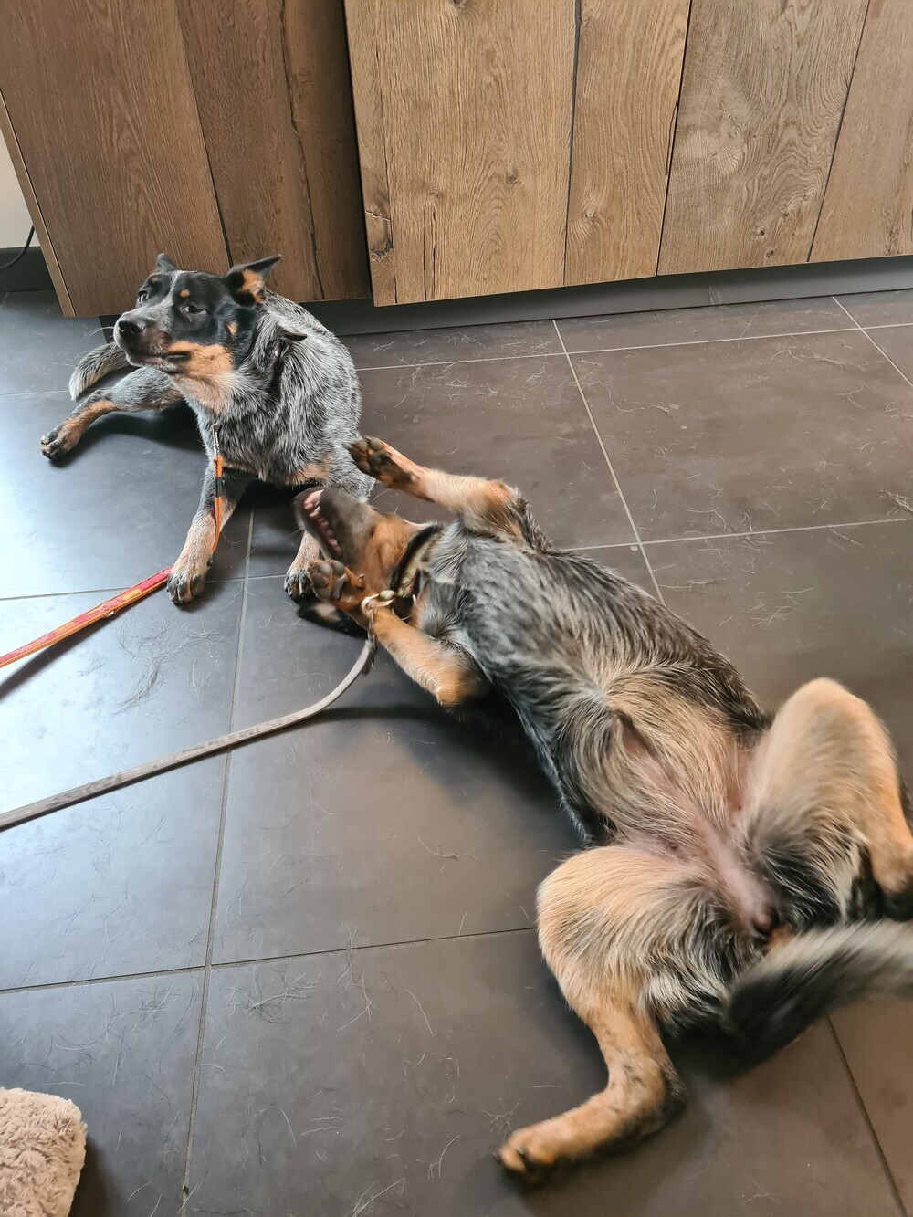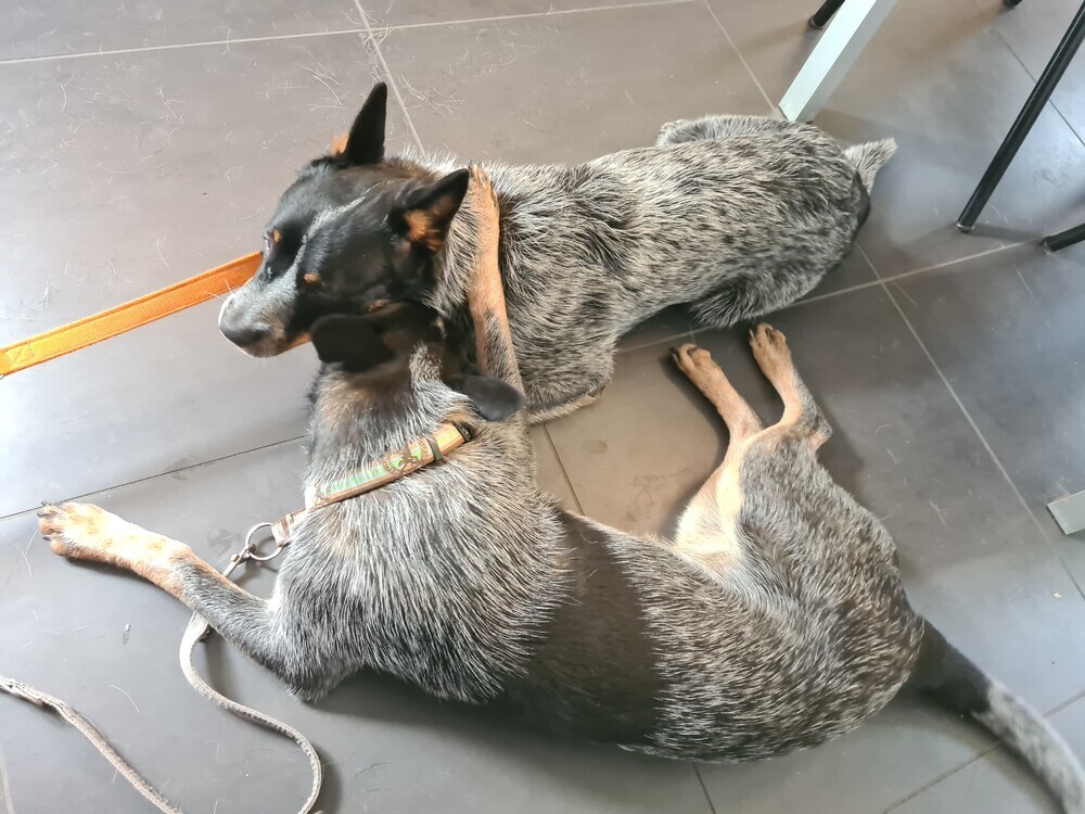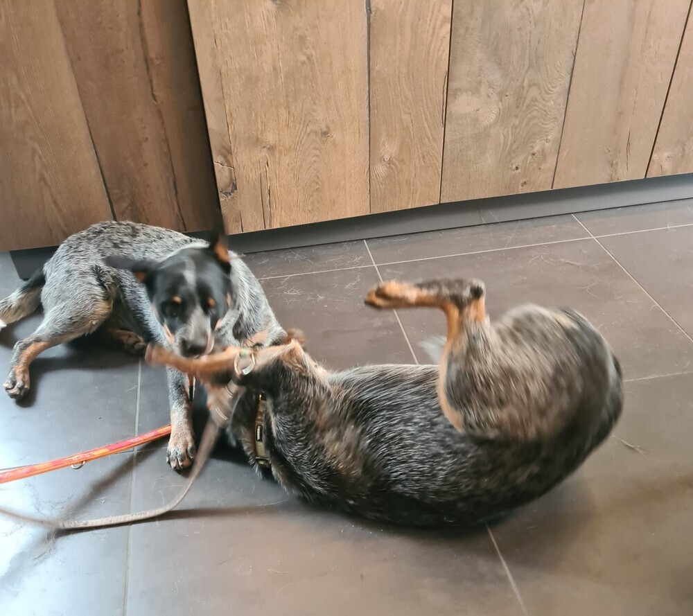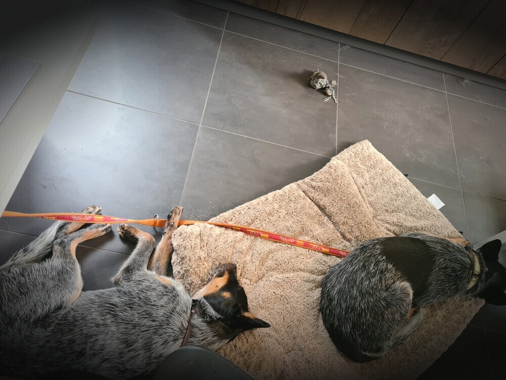 We laten de honden bij elkaar, dit gaat ook goed en we nemen regelmatig momenten dat de honden niet bij elkaar zijn.