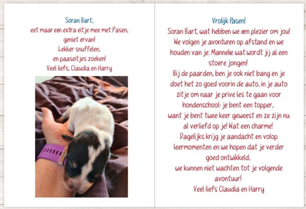 We leven met jullie en de puppy's mee en om goede moed te geven:
