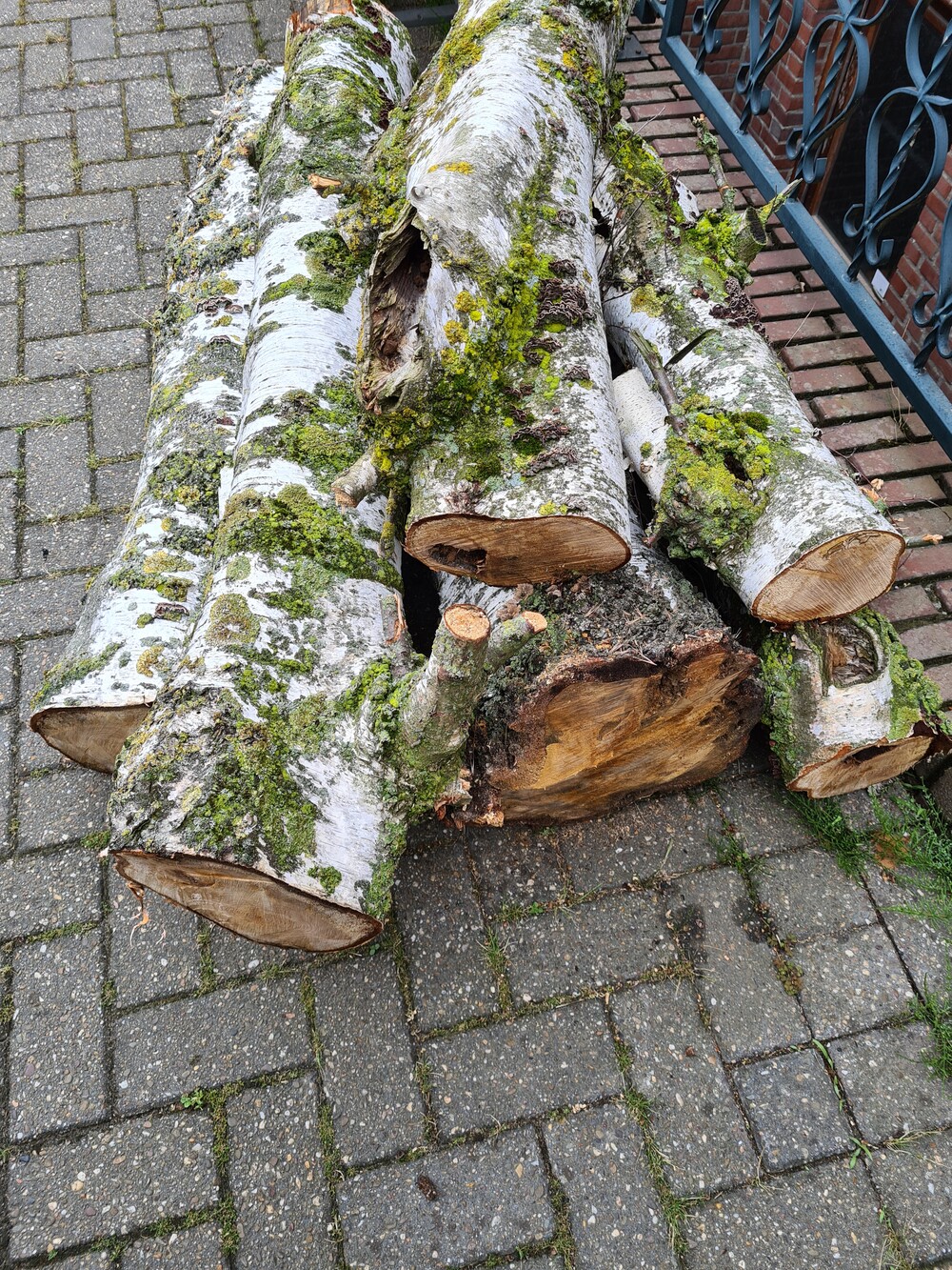 22 juni: We hebben een boom, die in de tuin stond omgezaagd, dus de honden kunnen spelen met de boomstammen daarvan.