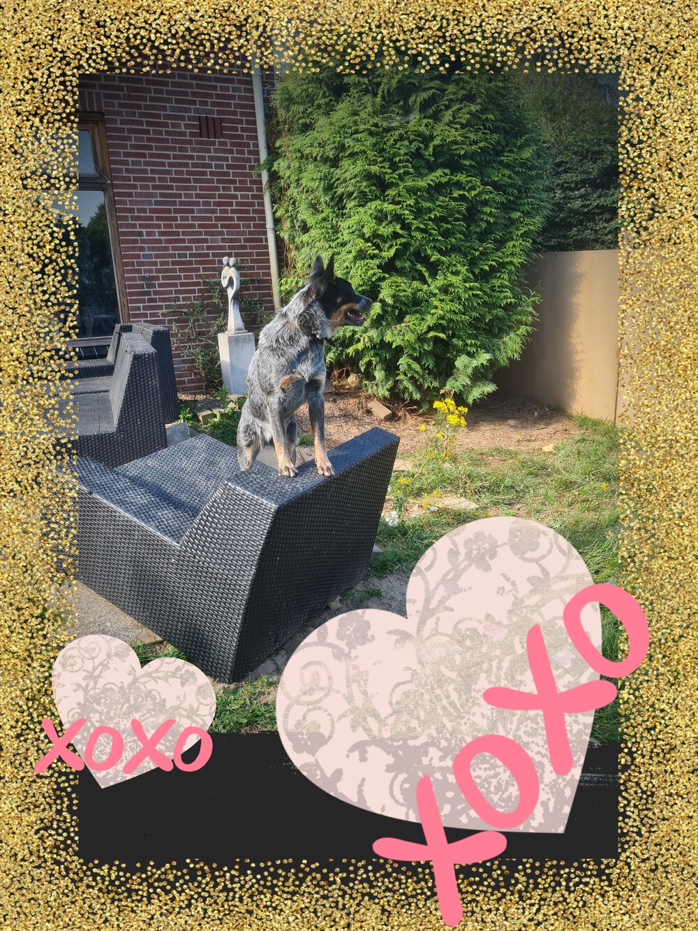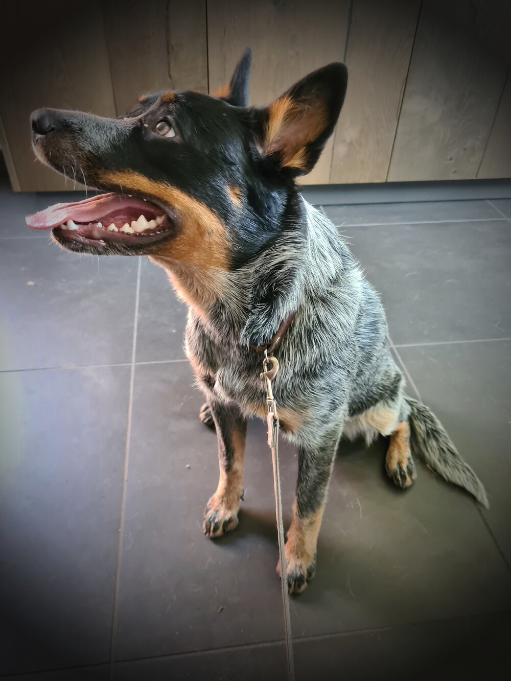 23 juli: het ging goed vandaag, ze heeft in een kleine groep van 4 andere honden in een groep gezeten. De bench vindt ze nog wel spannend, maar dat ging later op de dag ook iets beter. Volgende keer mag ze weer in een groep.