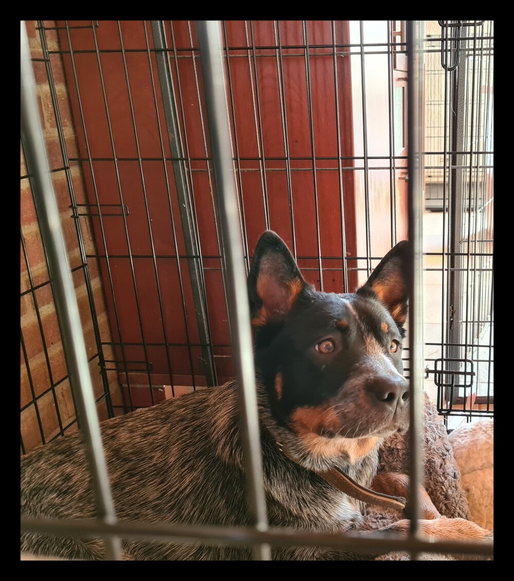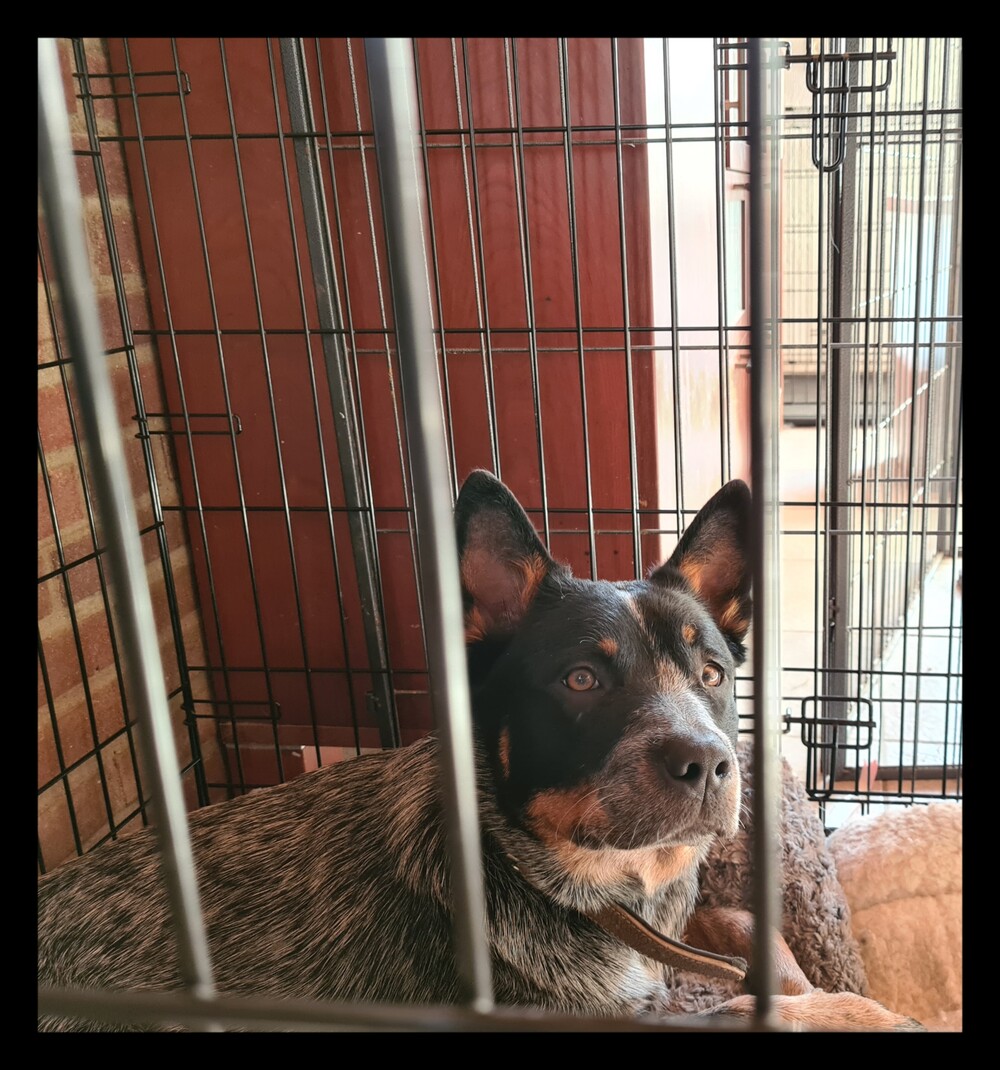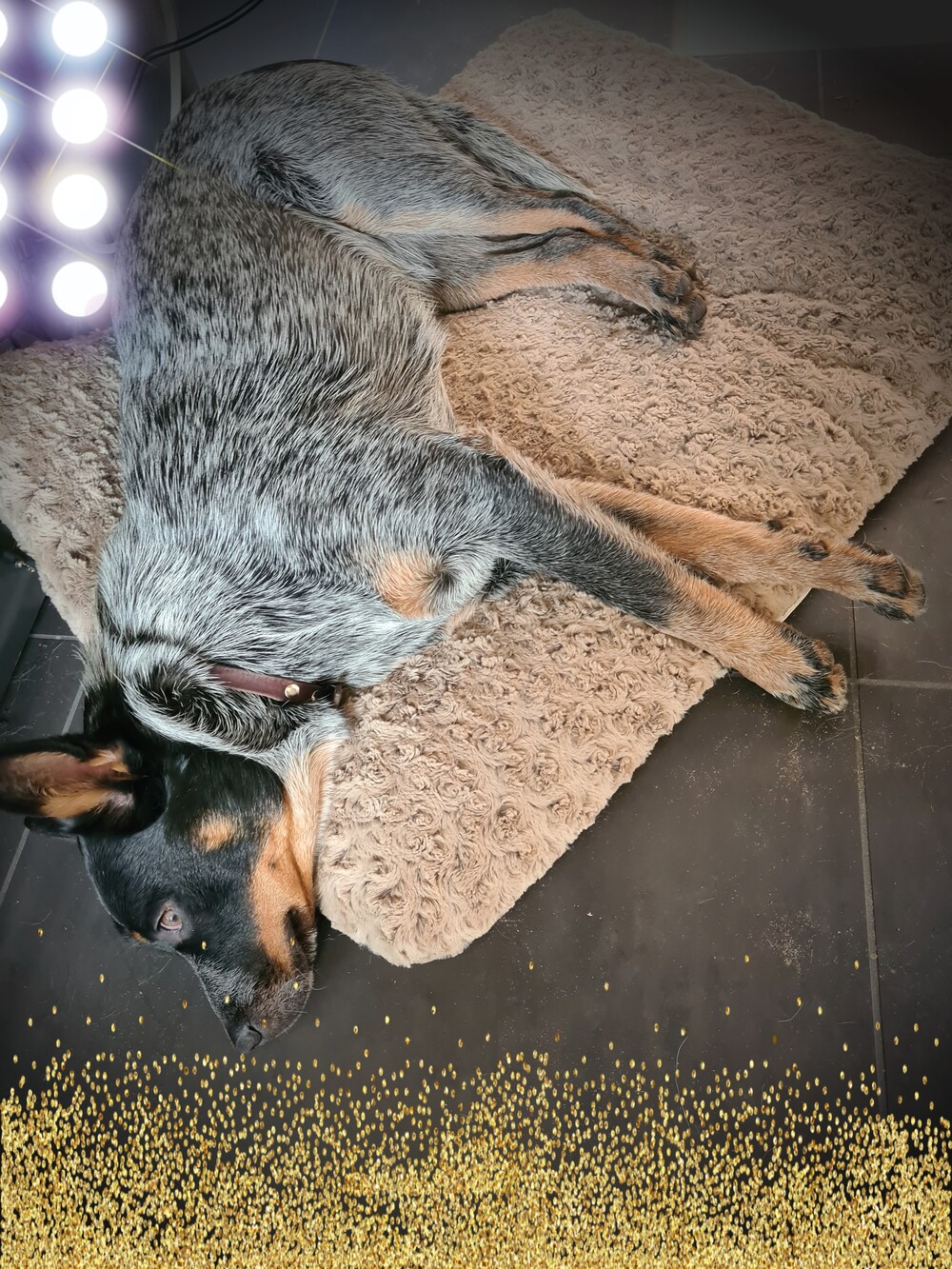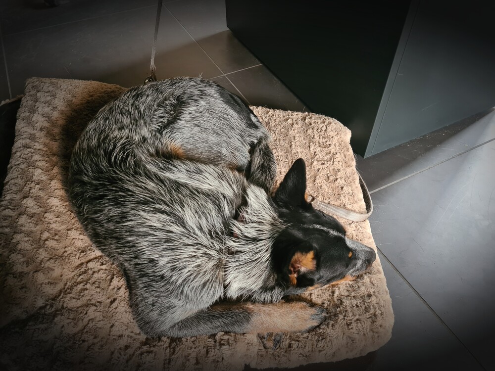 Eerste overnachting, voor haar een onbekende plek maar ze doet het erg goed. Voor de ervaring: spelen met andere honden en nachtje slapen, daarna weer een dagje spelen en daarna wordt ze weer opgehaald door ons.