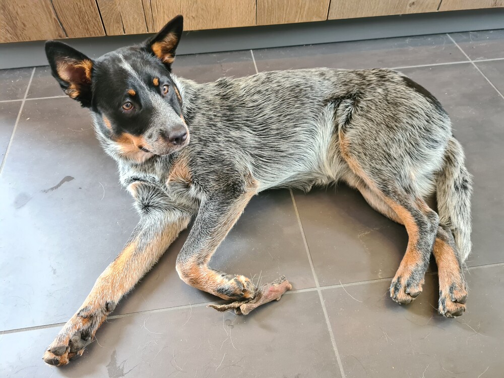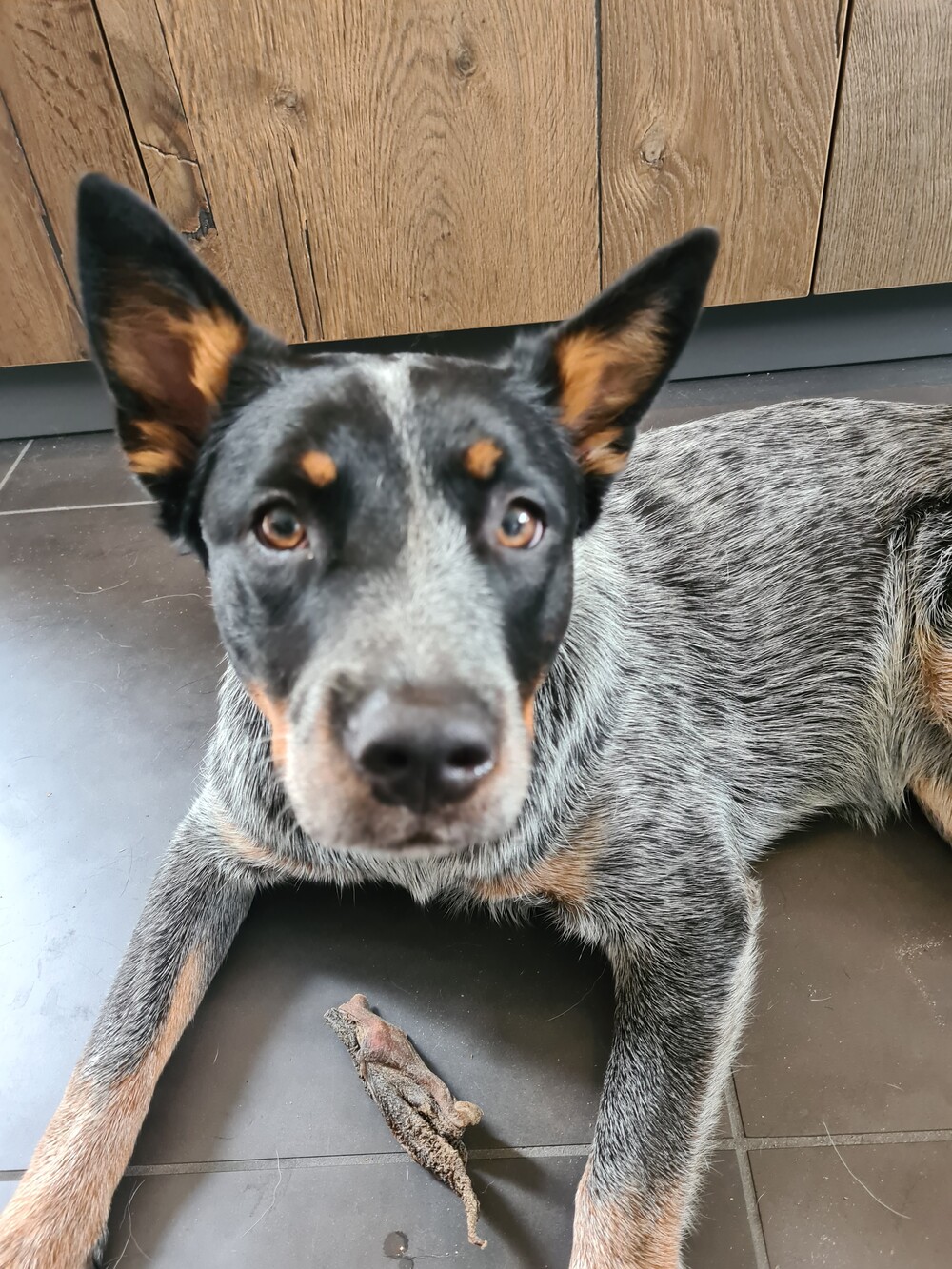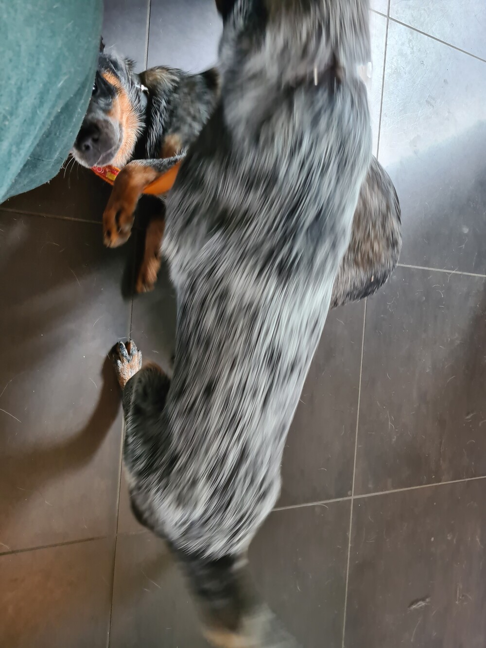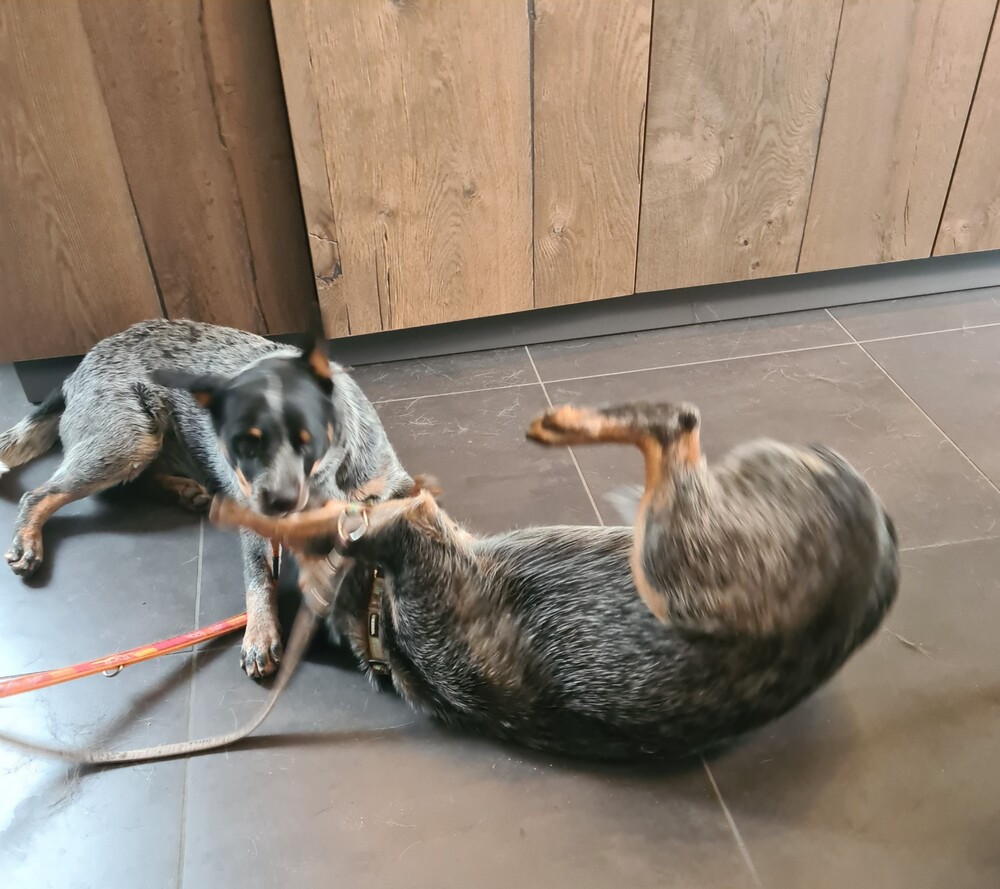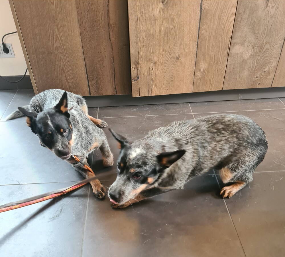 We hebben gewandeld, we hebben met de hele roedel met een speeltje gespeeld: Izzy wil dan ook graag meespelen.