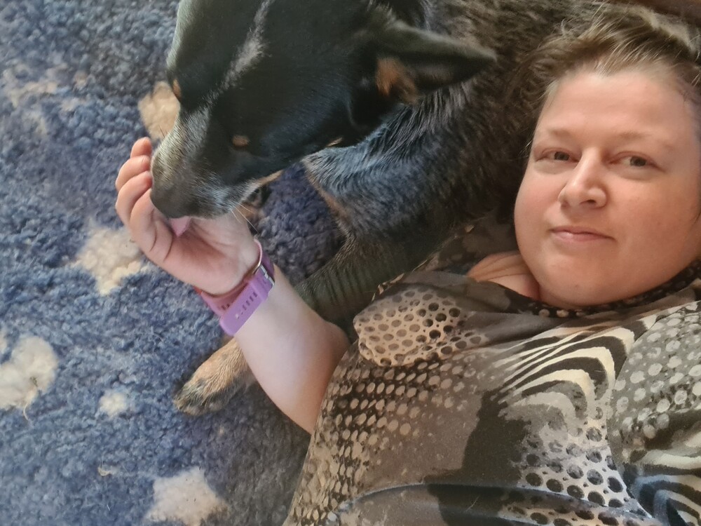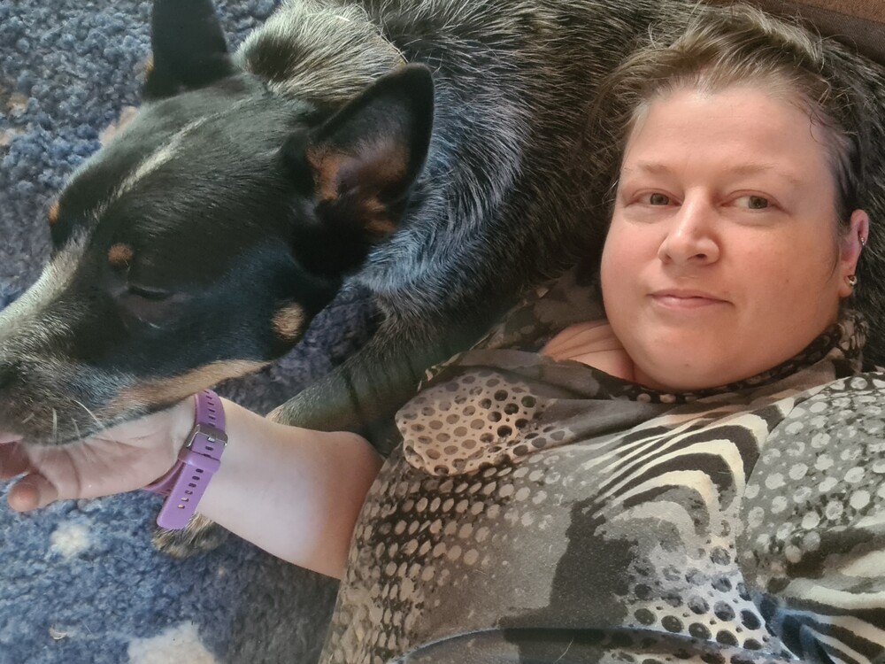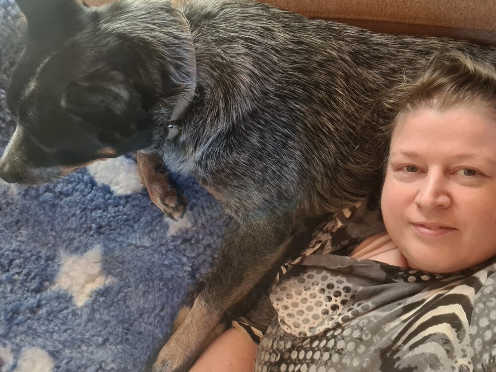 Eenmaal terug bij de ligstoel etc. was ze ook meer op haar gemak, dus weer opletten wat er langs het huis rijdt en dit keer ging ze zelf terug naar mijn vader toe om knuffels te halen, dus ze lag weer bovenop mijn vader, want die lag in de ligstoel. Mijn vader is daar erg blij om, want hij is dolgelukkig als de honden langskomen. Hij vondt het dan ook niet leuk dat Izzy niet naar hem toe ging de afgelopen keren, maar toen had ze ook de staart tussen de poten en dat was nu ook niet: al met al dus een geslaagde dag, want aan de hond kon je merken en zien dat ze meer op haar gemak was en zich meer zeker voelt.