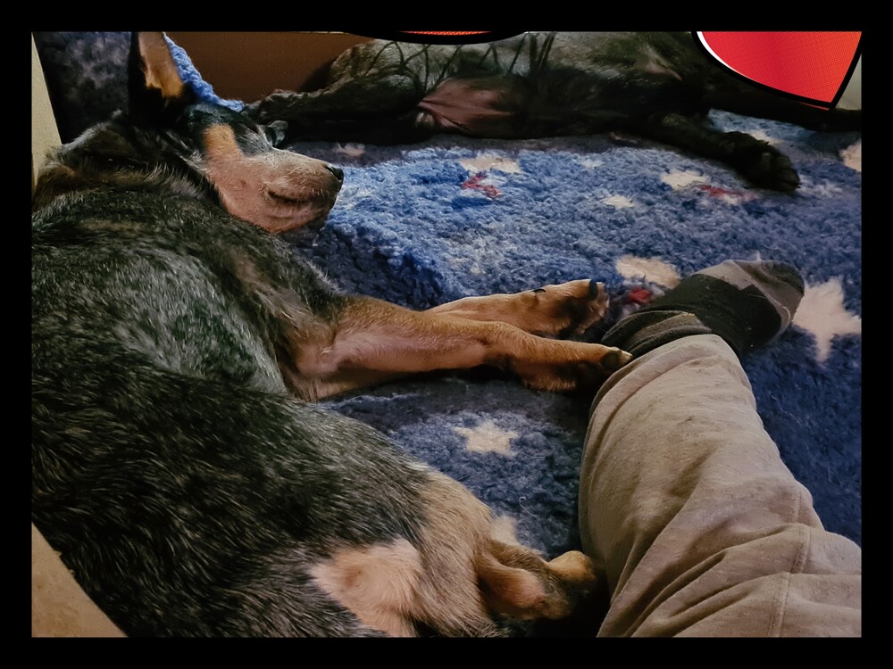 In de woonkamer met de honden. Nieuwe televisie gekocht, gezellig zo thuis