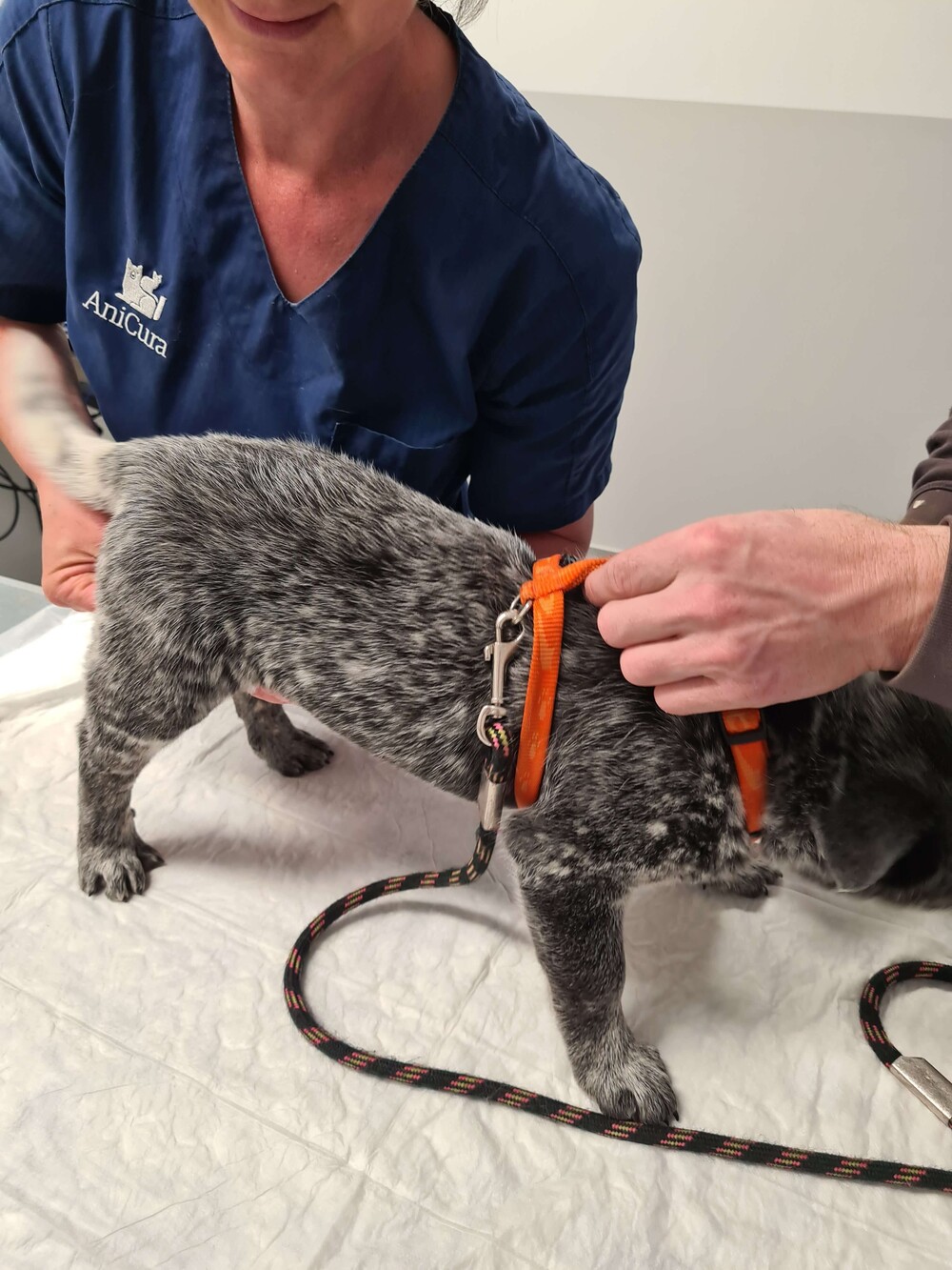Ik weeg 5.20 kilo, ik heb tweede inenting gekregen, kennelhoest, ik ben goed horend.