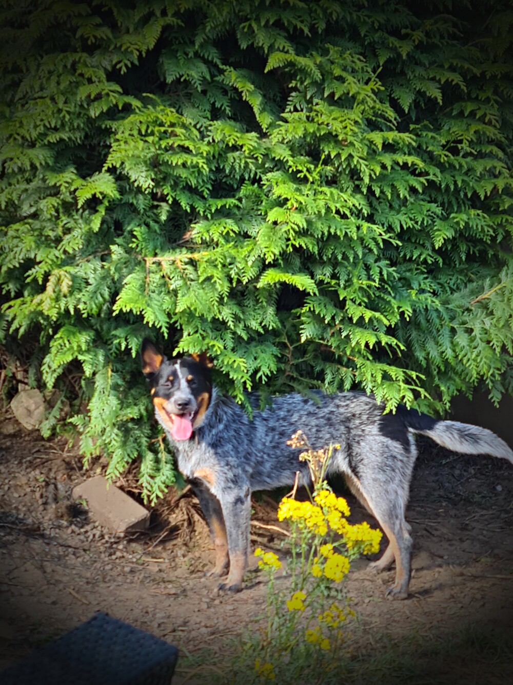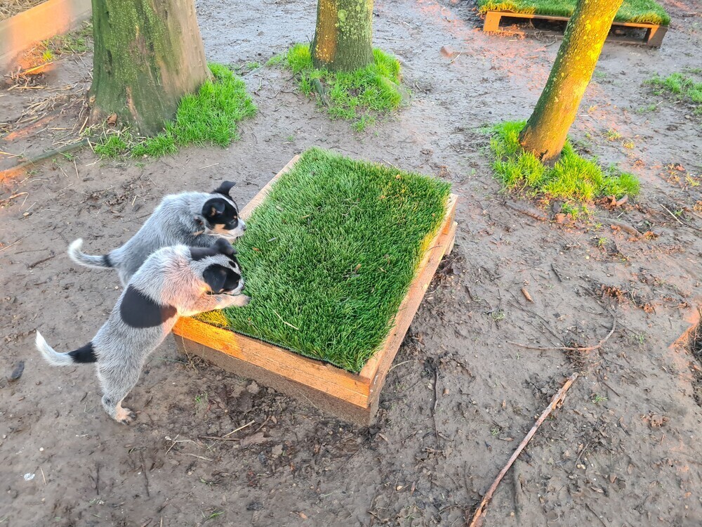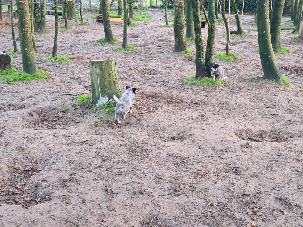 Ging goed, ze reageerde ook goed op de werknemers daar en ze stond zo op hun buiten tafel - het blijft wel een cattle dog - Volgende keer mag ze in een groep en mag ze dus spelen met de andere honden.