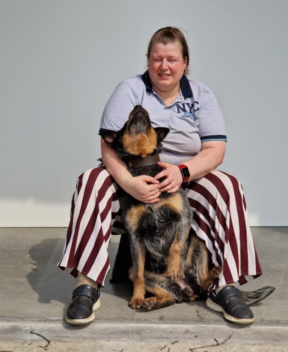 Vida heeft geen examen gedaan bij de gevorderde curcus bij de hondenschool.