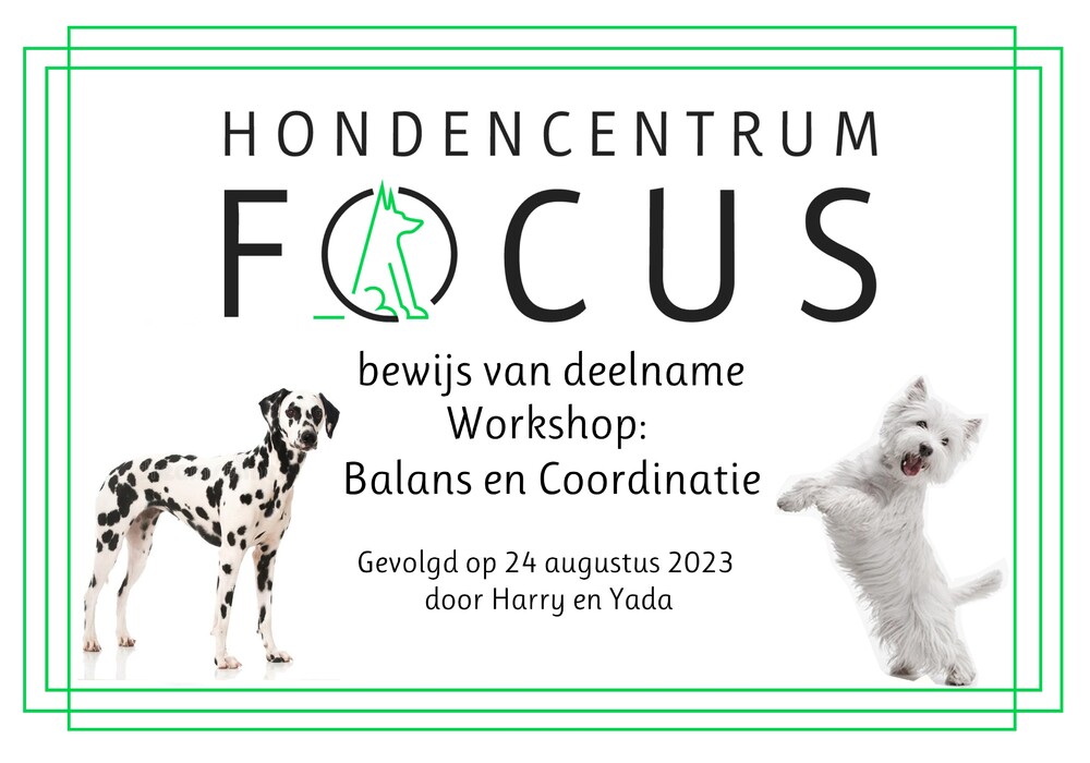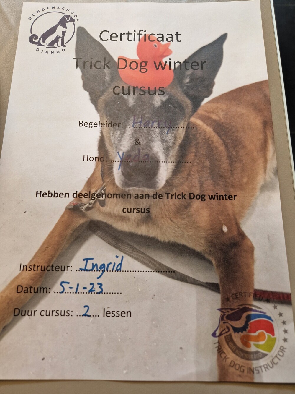 In december 2022: waar we de prive lessen gevolgd hebben, daar doet Yada mee met de workshop “balans en coordinatie” en “trickdog” beide is een mini-cursus van 2 lessen, dus 4 lessen in totaal.