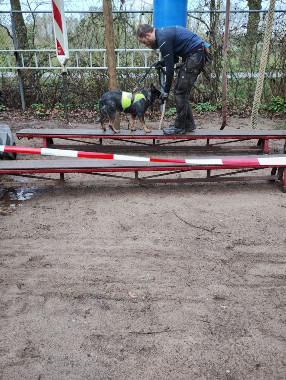 Yada krijgt Balans en Coordinatie les, afwisselend met de andere cattle dogs, zelfde locatie als waar Bucky en Silver hoopers en agility krijgen