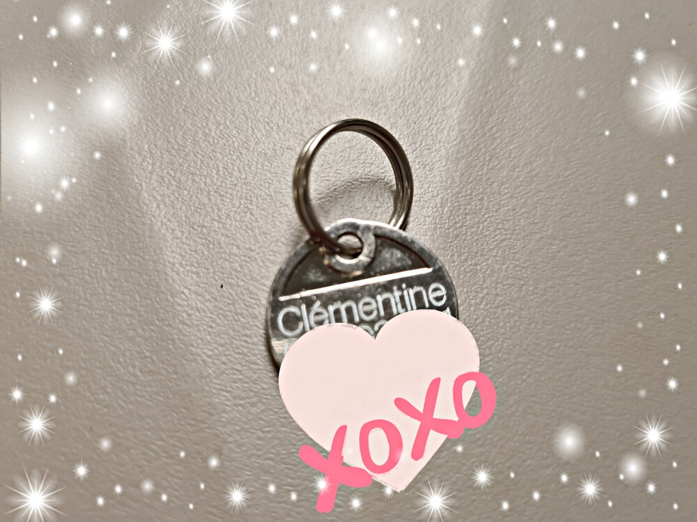 18 maart: naam tag binnengekregen. De kleinste maat, dus heeft ze geen last van, staat telefoonnummer op, want je weet nooit.