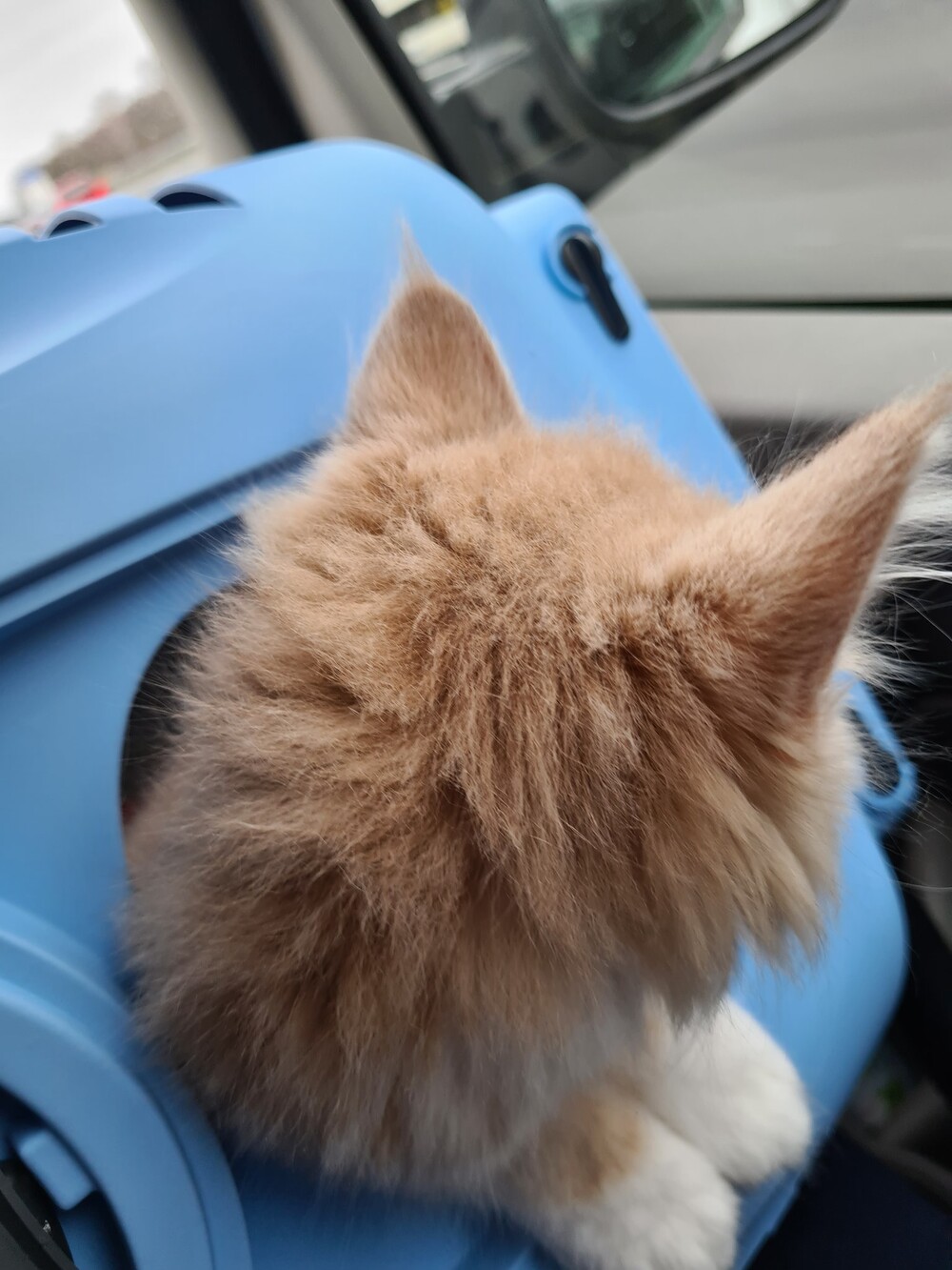 28 maart: poes ophalen. Ik heb ook een kittenpakket meegekregen: we hebben daar nog foto's gemaakt van de moederpoes en van het zusje