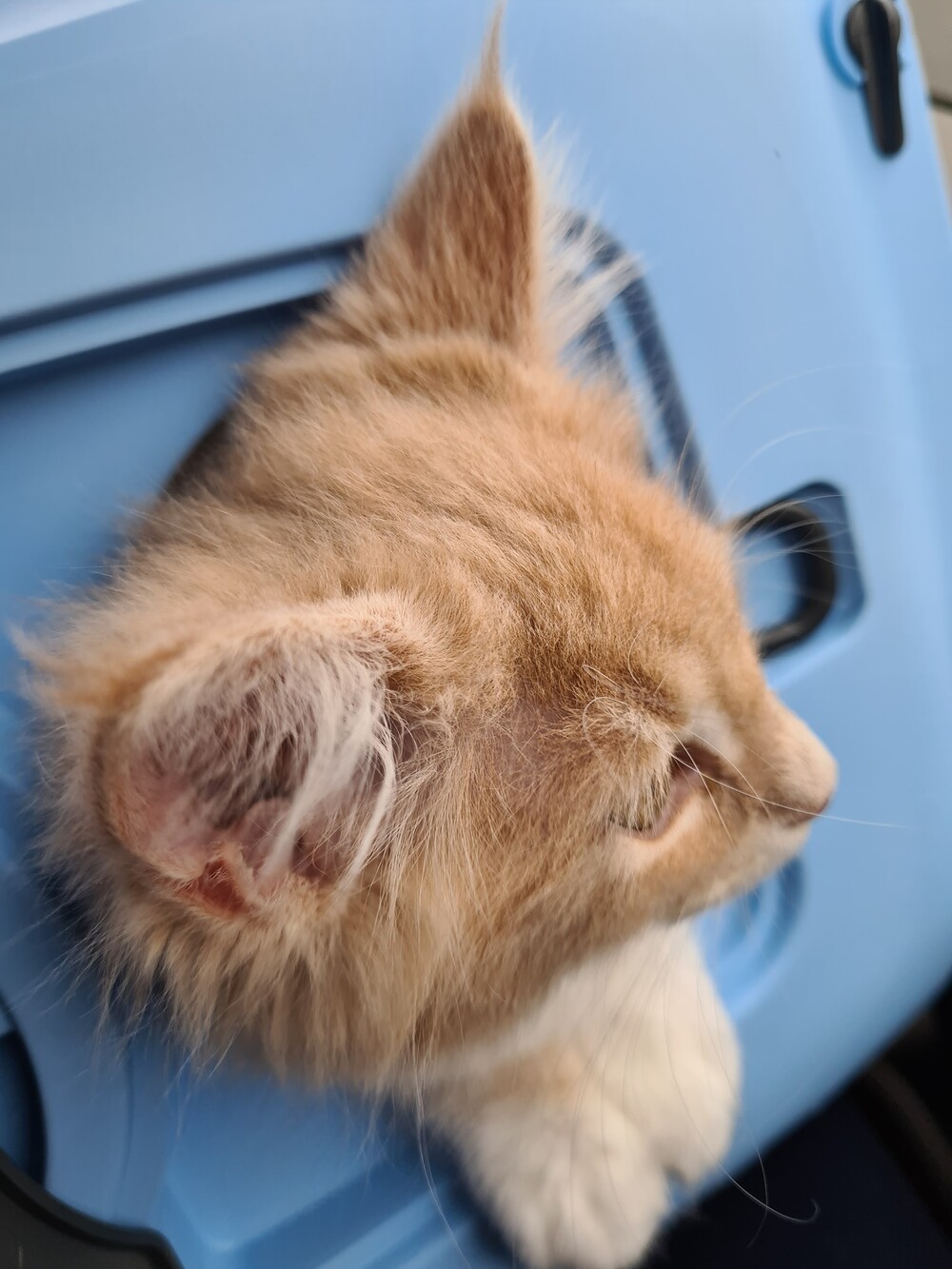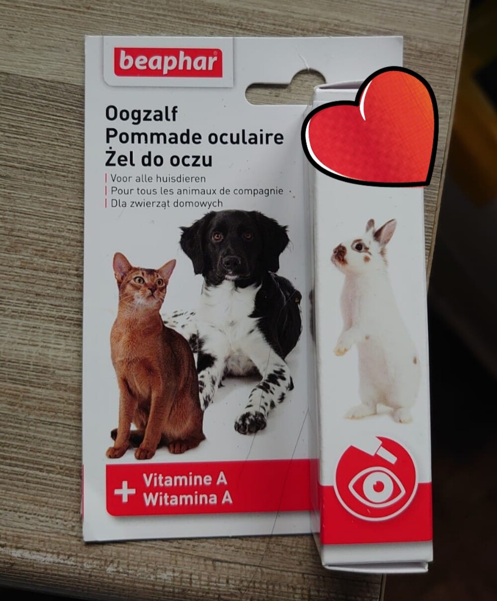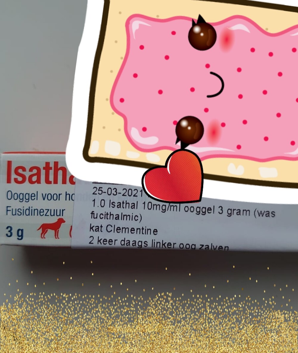 25 maart: Ze is vandaag naar de dierenarts geweest, ze heeft haar oogje ontstoken. Ze heeft een zalf meegekregen, van waar ze binnen twee dagen resultaat moet zien. 2x daags in haar oogje inbrengen en dan moet dit goed komen. Mocht het zondag ( 28 maart) niet over zijn, dan krijg ik het zalfje mee naar huis, maar hopelijk is dit niet nodig. Er kwam eter uit haar oogje en had al met afgekoeld water schoongemaakt en een oogzalf gebruikt met vitamine: helaas werkte dat niet. Deze zalf, van de dierenarts, krijg je alleen via de dierenarts en is niet zo te koop. Dierenarts heeft ook met speciale bril gekeken en ze zei dat het zo kan opkomen bij kittens of ze nu ingeënt zijn of niet. Misschien tocht gehad of vuiltje in haar oog gekomen.