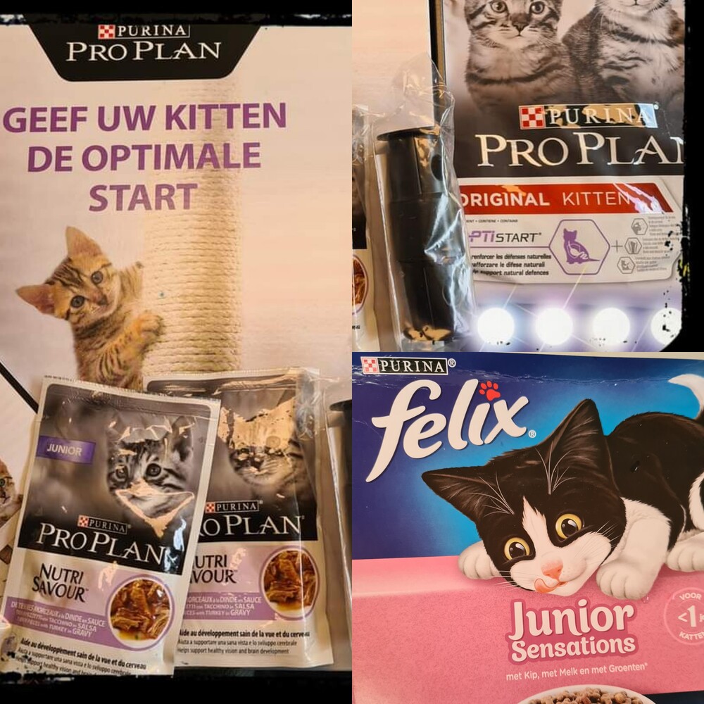 verder hebben we van Purina een "kittenpakket" aangevraagd, zodat we een "welkoms pakket" voor de kitten hebben.