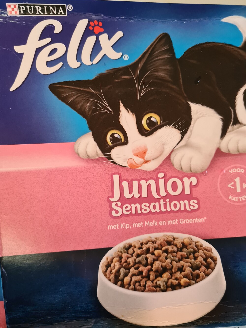 5 mei: We hebben Felix van Purina, in huis gehaald, omdat de kitten dat gewend is om te eten,