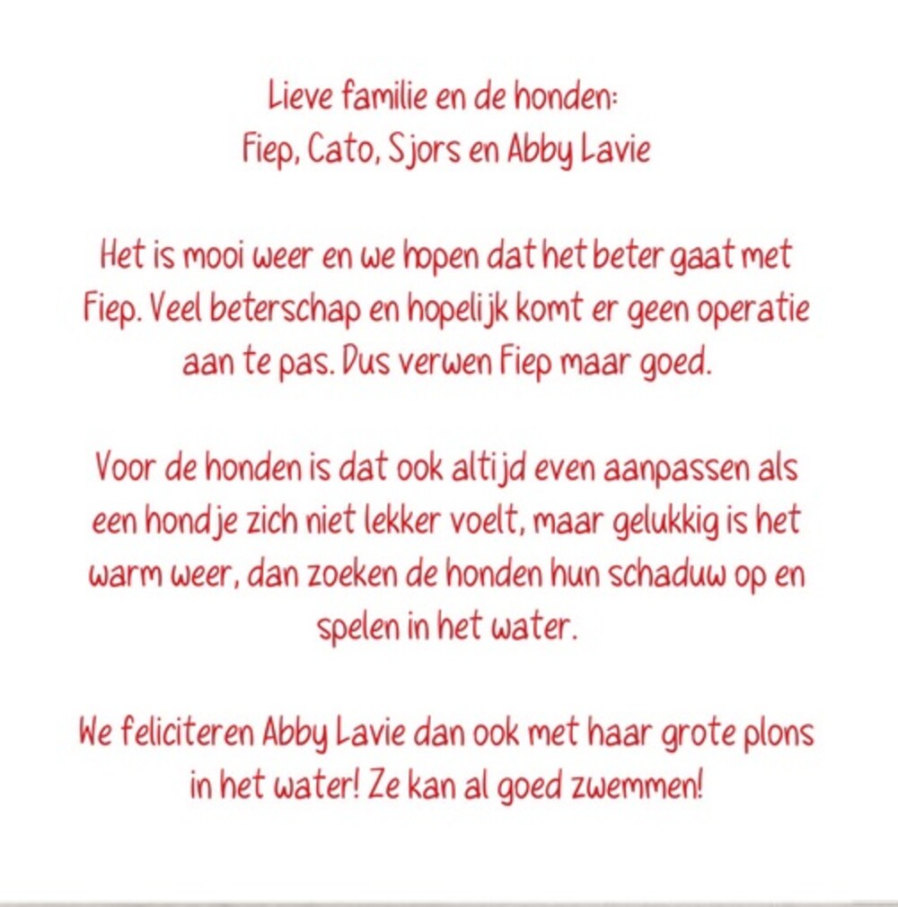 18 juni: Het gaat goed met Fiep, ze zit nu nog aan de pijnstillers, maar ik wil volgende week afbouwen.