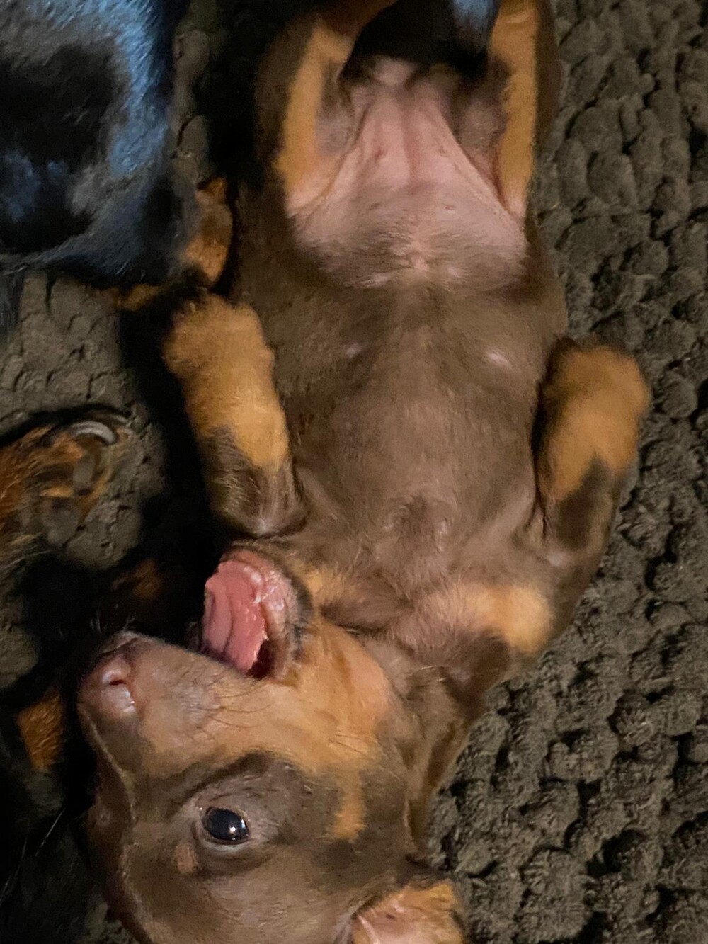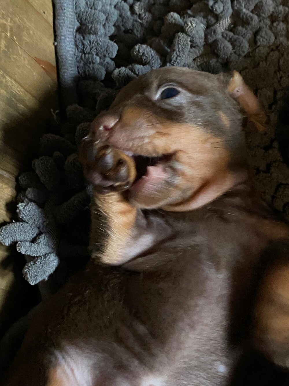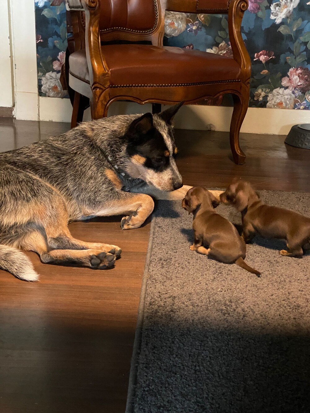 2 september: Ze vindt het allemaal zo spannend en vreemd, komt denk ik omdat Cato lag te grommen (heel zachtjes) Helaas voor haar had ik een pup gepikt. Zo konden Abby en Fiep even kijken.