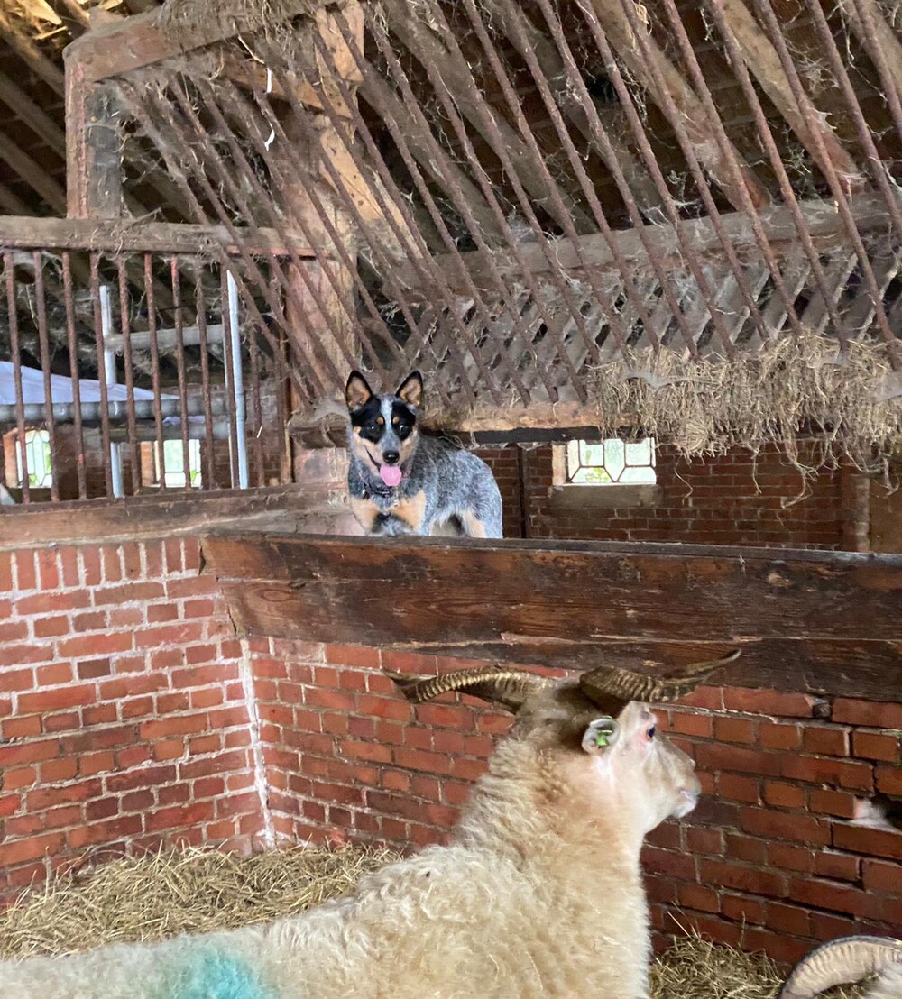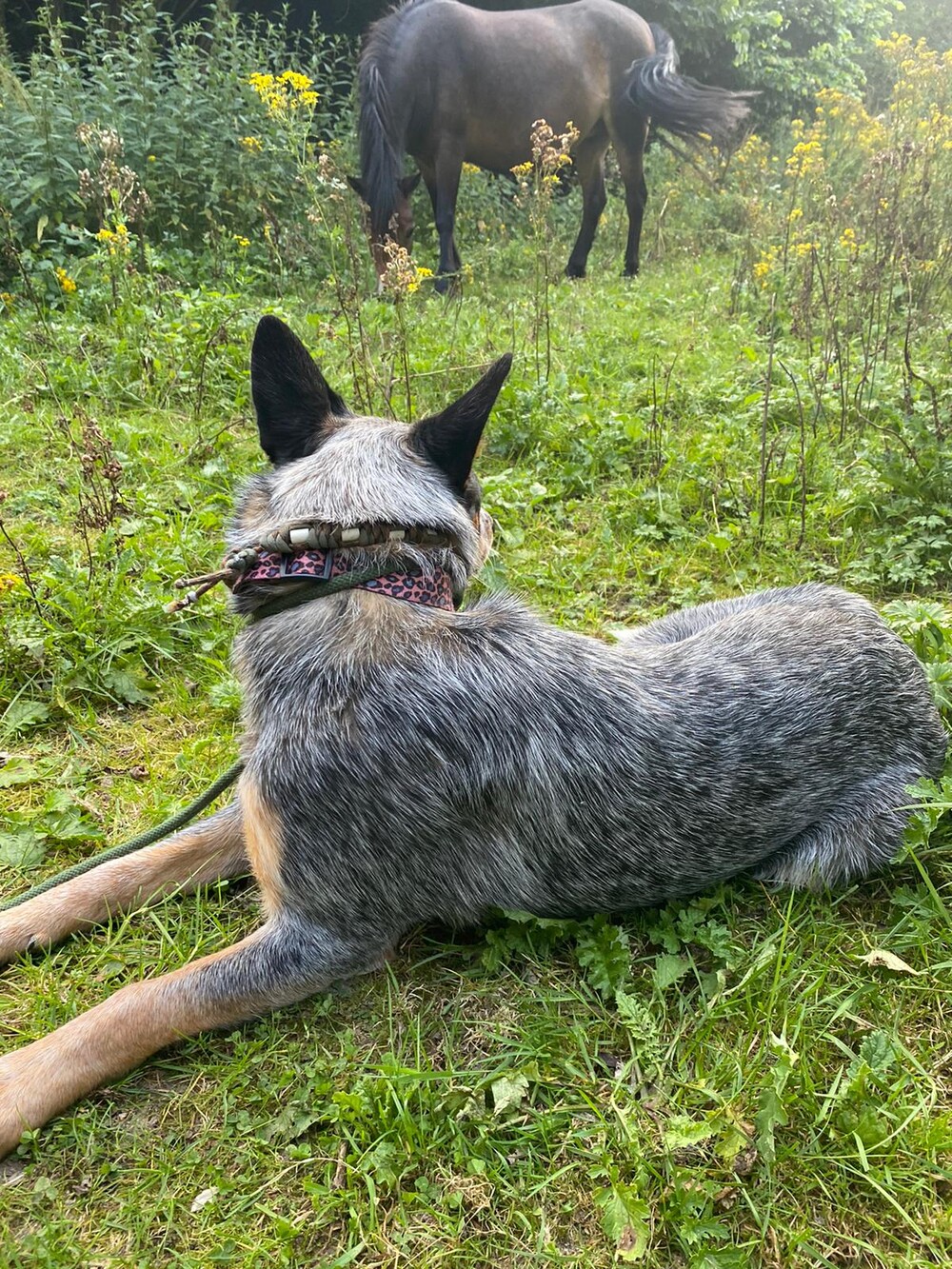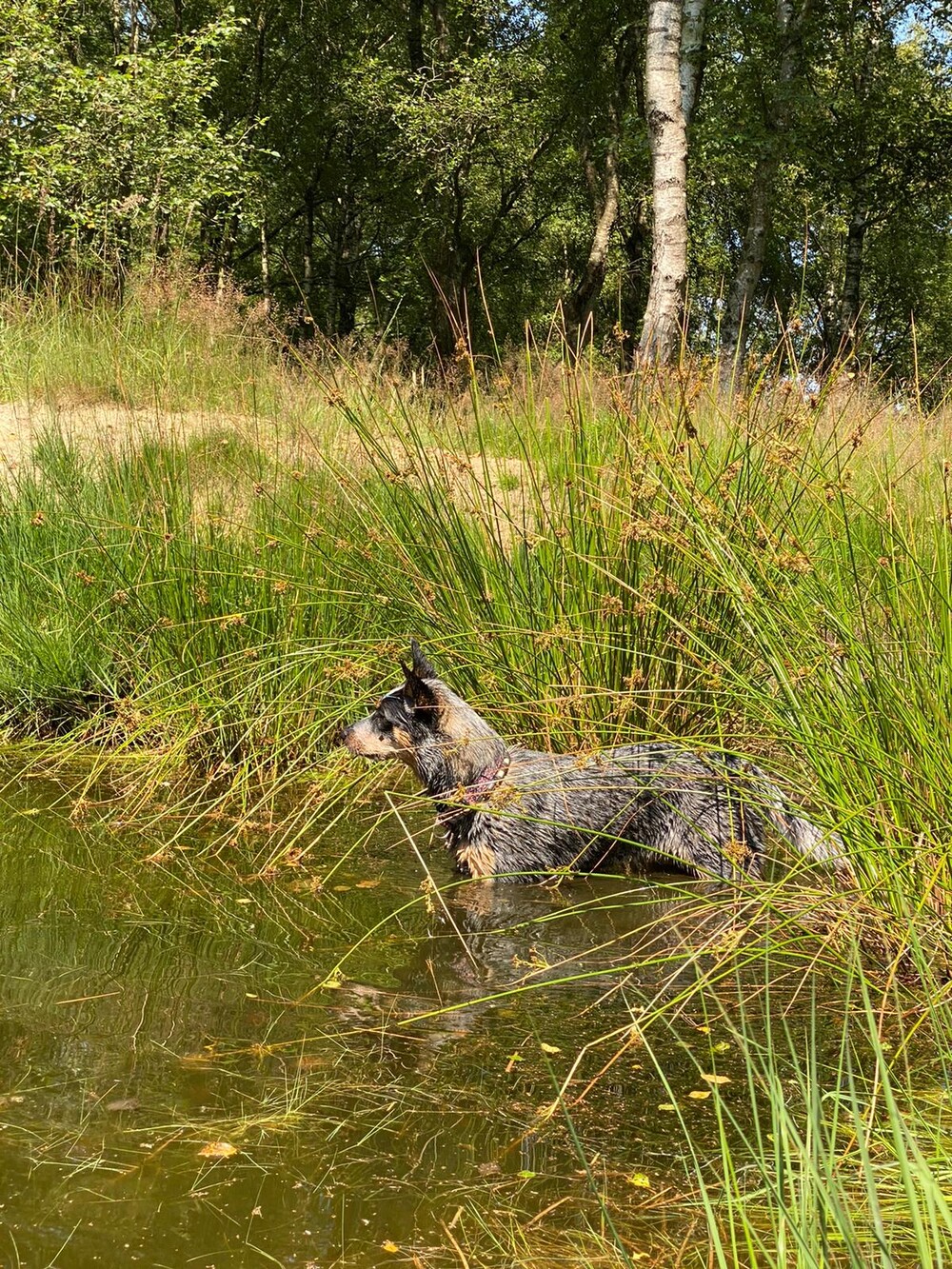 Cato is officieel met pensioen, vanwege haar heup en nek, zag nu ook dat ze moeite had om overal doorheen te komen. Gelukkig is ze niet heel zwaar en kan ik har tillen. Ik zie aan haar dat ze het ook nog wel leuk vindt. Abby red zich meestal wel. Zelfs bramen struiken en brandnetels geeft ze niet veel om. Enige moment dat ik haar moet tillen is bij de veeroosters, dus kon prima zo vandag en had cato mooi rust!