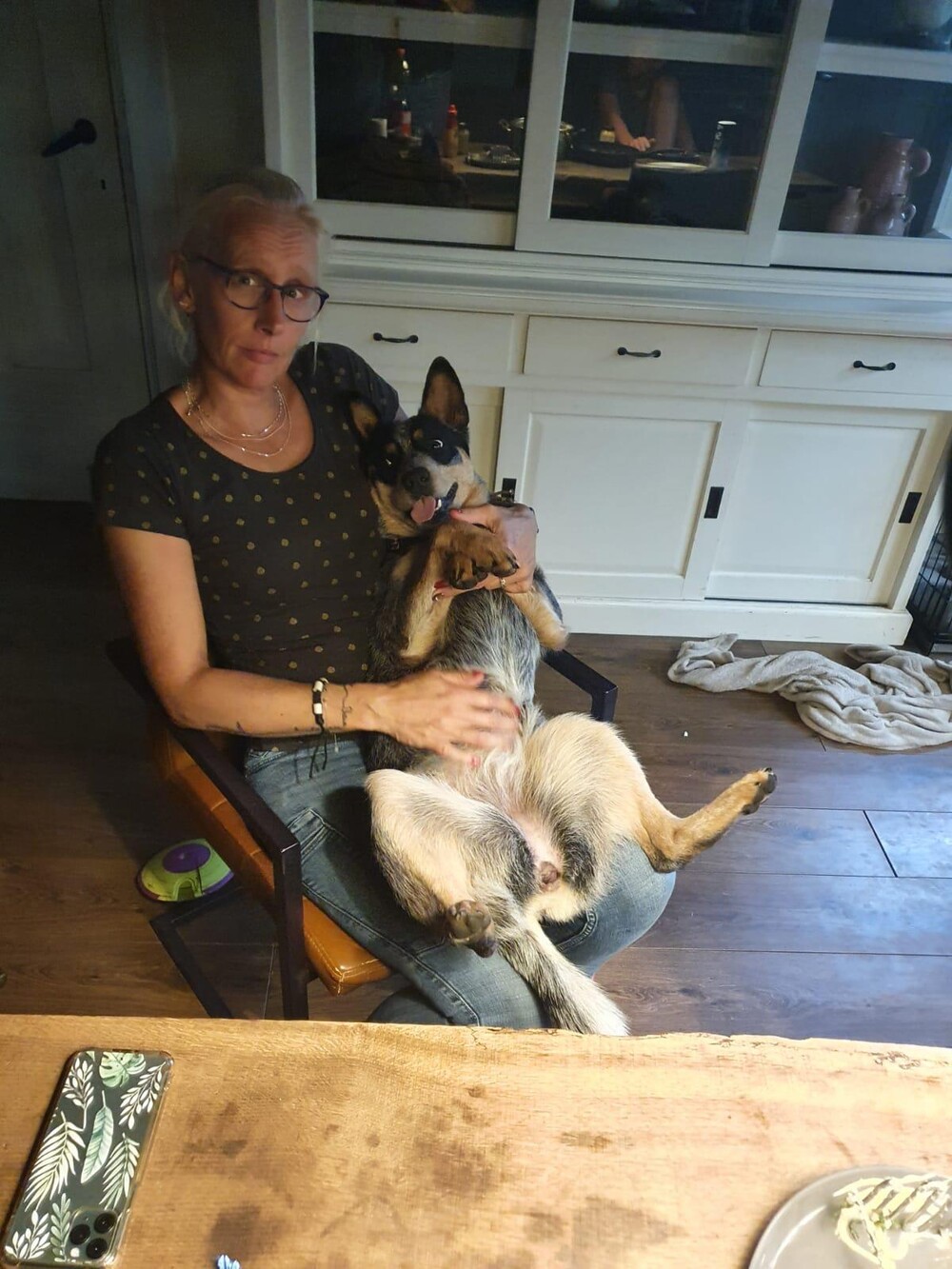 Broekjes doen we niet aan, die worden toch alleen maar gesloopt. Ik heb dat nog nooit bij mijn teven gedaan. Ze zijn altijd vrij schoon van zichzelf. Hopelijk is Abby dat ook en nogmaals, we hebben een groot voordeel dat we op een boerderij wonen en ons werk ook altijd buiten is.