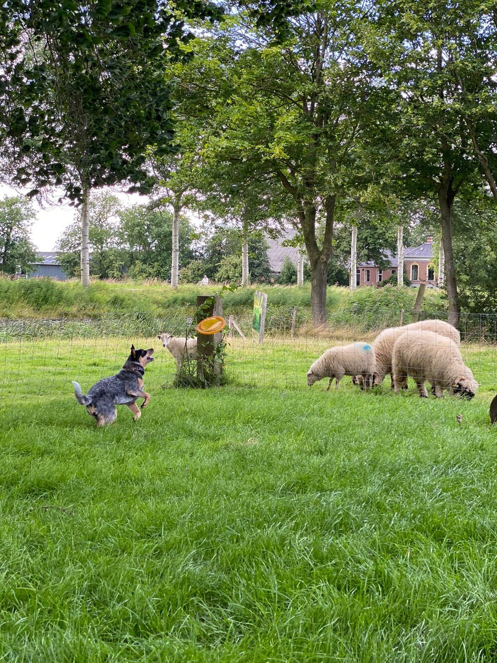 We hebben hier drie teven lopen en een reu. We moeten even extra oppassen, maar dat komt goed.