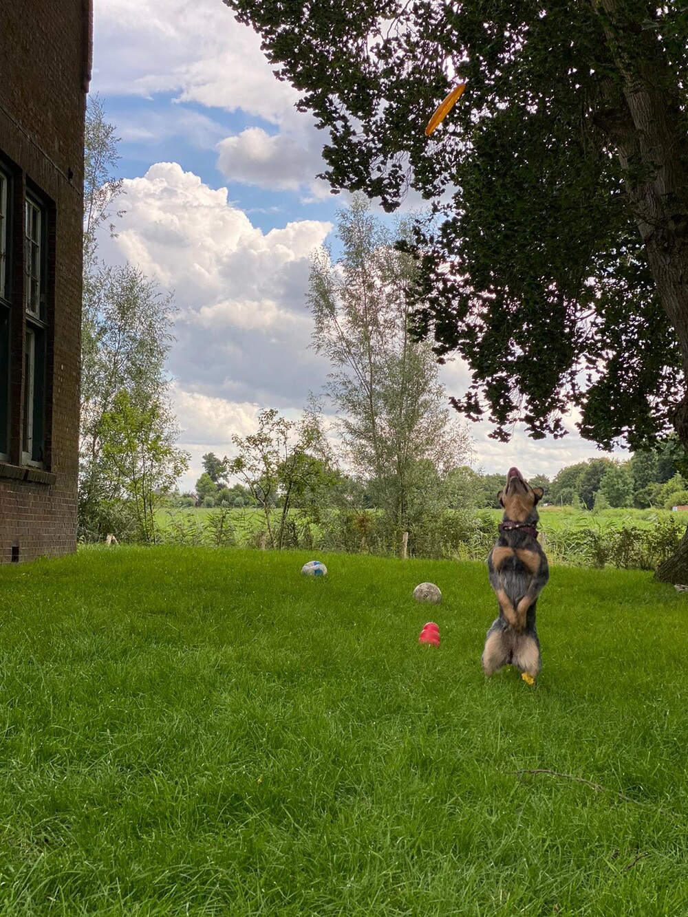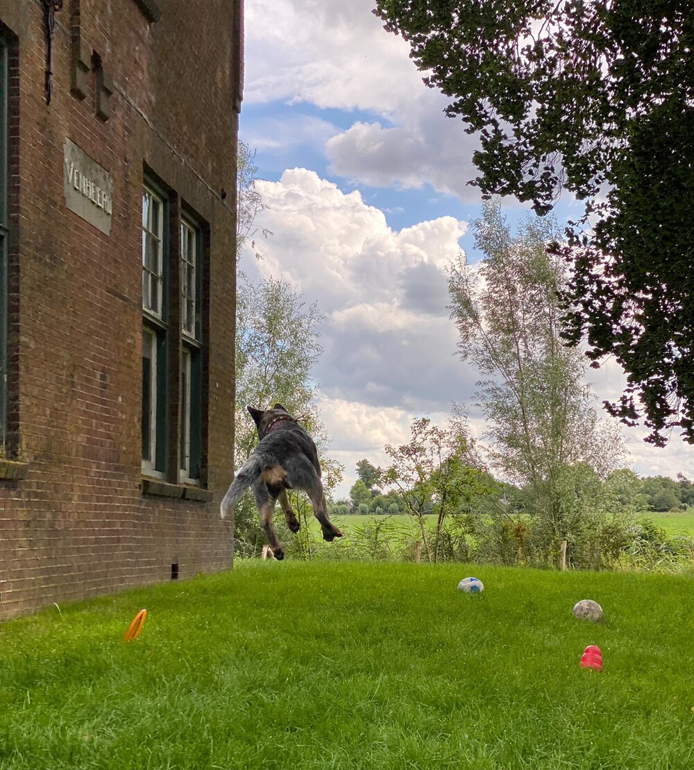 We wonen op een grote boerderij. Als Sjors achter is, is Abby voor, of andersom. Iedereen weet heel goed dat ze nu niet bij elkaar mogen. Sjors is altijd bij Jasper, Abby bij mij (en Fiep en Cato natuurlijk) Ik ben meer onderweg dus Abby ook. Het komt wel goed, het is alleen nu even goed opletten.