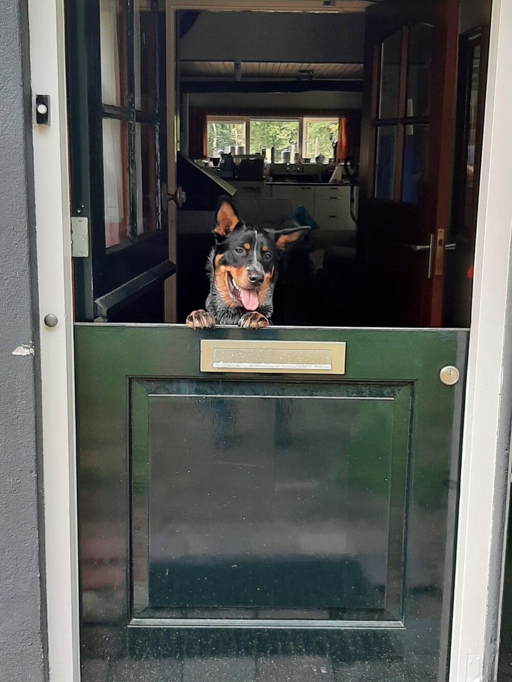 7 juni: Als hij vrij loopt dan luistert hij erg goed en let erg op mij.