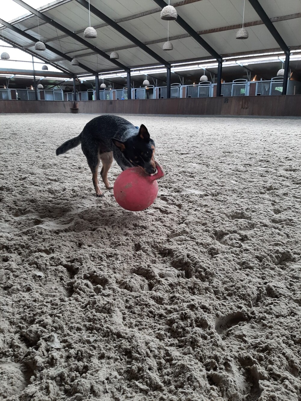 Volgende week, ga ik Soran Bart laten langslopen langs mijn paard. We doen dat met zijn tweeën. Bianca met Soran Bart en met paard en Mathieu met lange lijn ernaast ook aan Soran Bart vast, zodat als hij te dichtbij komt hij hem kan corrigeren. Ik heb de allermakste paard, die heeft nog nooit wat gedaan, ook niet bij de vorige honden. De paard is de andere twee gewend, maar daar durf ik het niet mee.