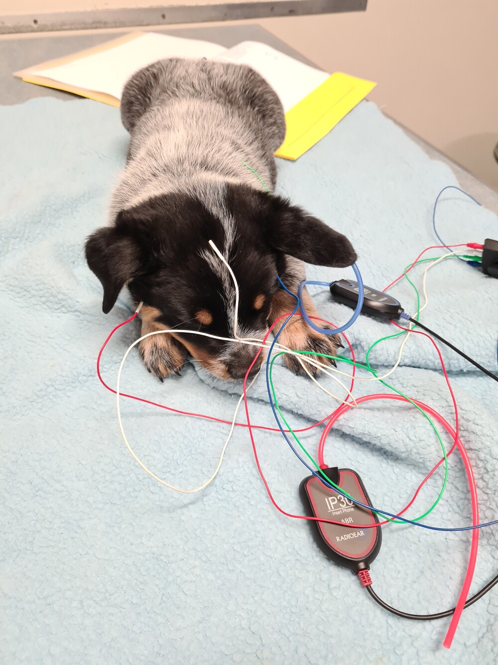 Er worden 3 naald elektrodes aangebracht op het hoofd van de pup ( één bij elke oorbasis en één op het midden van het hoofd). Ook word er een dopje geplaatst in de gehoorgang waardoor het dier klik-geluiden te horen krijgt. Er worden door de meetapparatuur 1000 klik geluiden (11 per seconde) van 70 dB doorgegeven, waarna de apparatuur de gemiddelde hersenstam activiteit registreert.