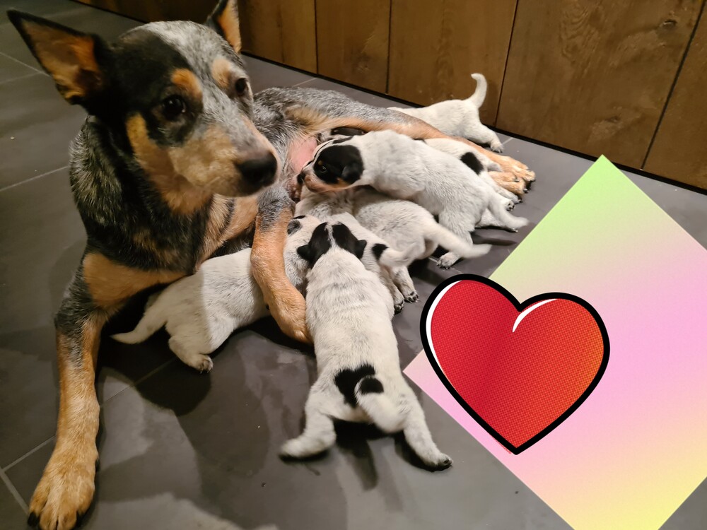 Cadeautje uitgepakt: daar zaten acht puppy's in.