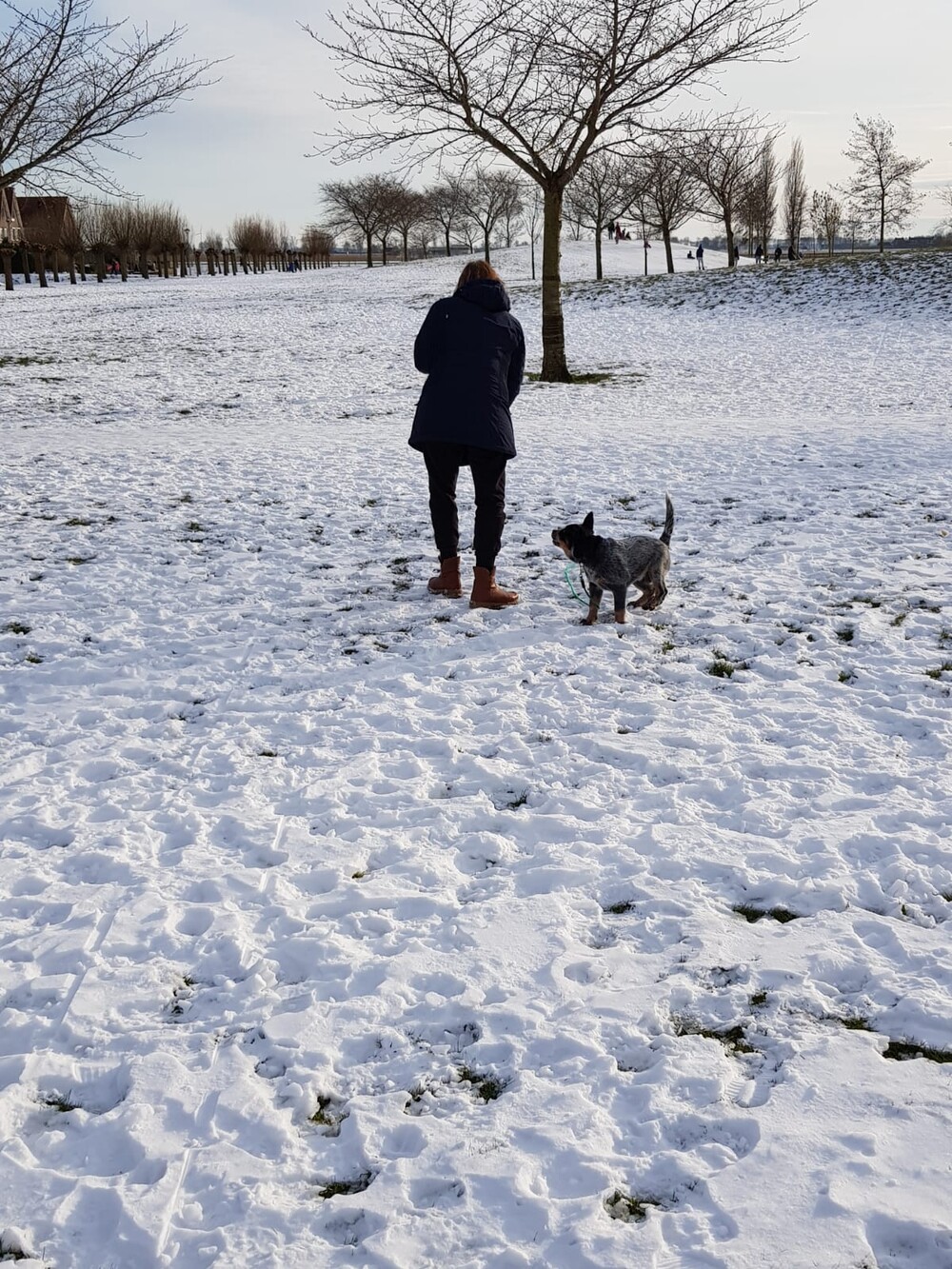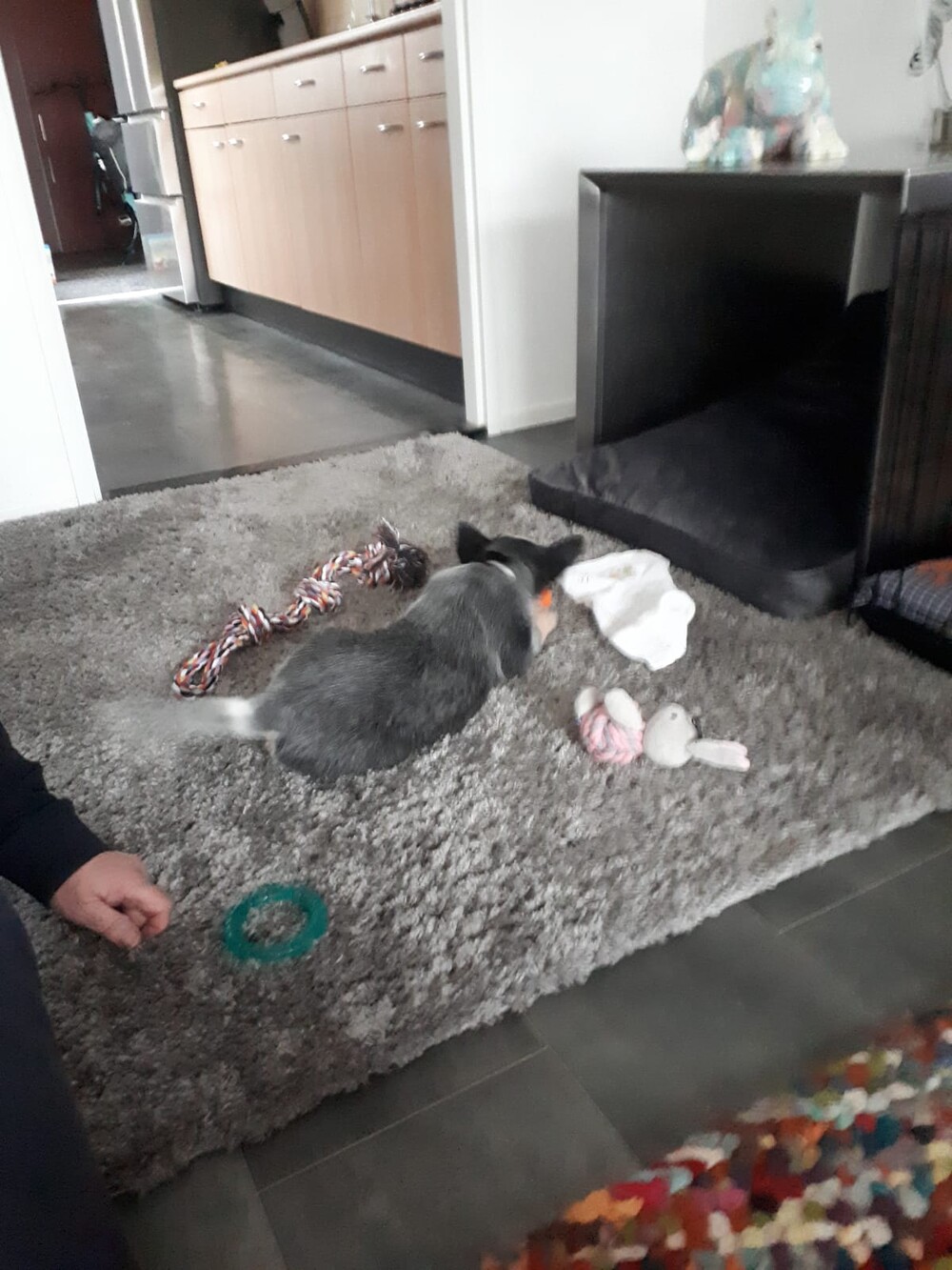 Goedemorgen even korte bij praat, ik was best wel moe gisteravond, hele ervaring zo'n dag . 150 kilometer rijden met mijn nieuwe vriendjes , best wel een stuk Yvonne had een lekker plekje achter in gemaakt, dus heb ik de hele weg geslapen. Aangekomen in mijn nieuwe huis, waar veel speelgoed was heb ik me even uitgeleefd, tja alles op de grond was voor mij alleen en niemand die het afpikte. Daarna lekker gegeten en na even met mijn 2 nieuwe vriendjes geknuffeld, even slapen in mijn eigen huis, waar een bekende deken in lag. Na het wakker worden naar buiten waar vreemd wit spul naar beneden kwam, na plassen en poepen, snel weer naar binnen. Zo ging de avond voor bij. Toen het bed tijd werd mocht ik met mijn vriendjes mee, en mocht naast de hele grote mand waar zij in gingen slapen, in mijn eigen bedje en bench slapen met de deur open dat vond ik zo fijn, dat ik iedereen heb laten slapen tot 8 uur, dat vonden ze volgens mij wel fijn, want snel naar buiten plassen en poepen, want dat had ik netjes opgehouden. Toen lekker eten en 2 uurtjes later lekker bij de boer op het land.