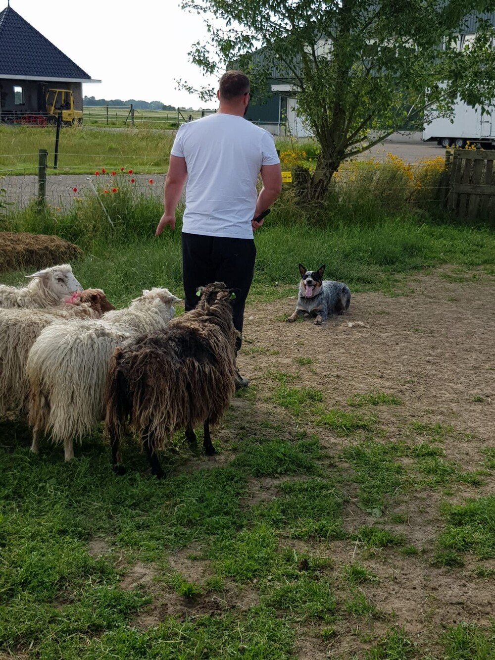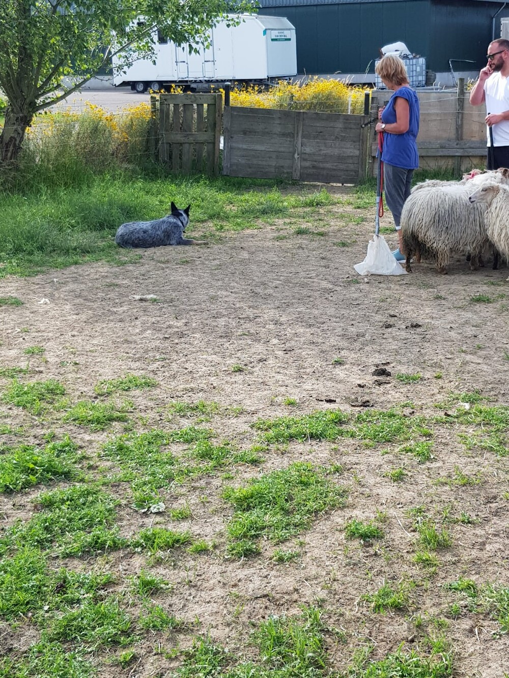 We waren bij de schapen. Yvon heeft dit al een paar keer gedaan, elke keer wat meer, maar gaat goed. Handler is dik tevreden en vind Ava Kira elke keer beter, maar ook sterker en mooier worden.