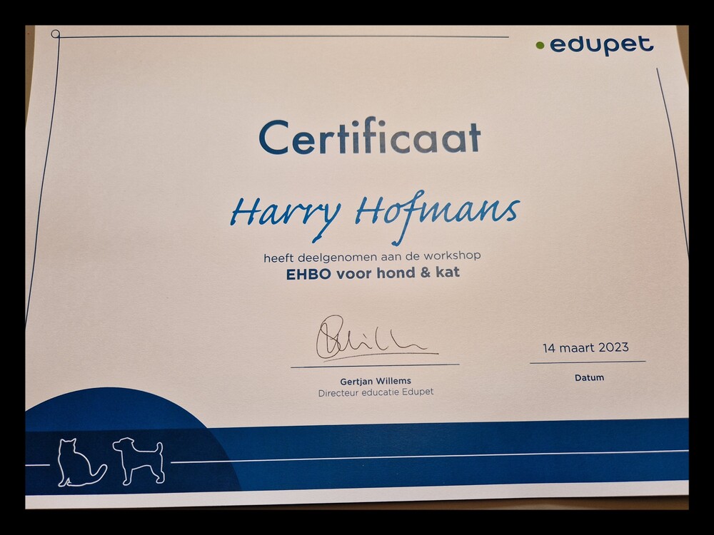 dan krijg ik, samen met Harry, Ehbo praktijk oefeningen met een dier, zoals een hond.