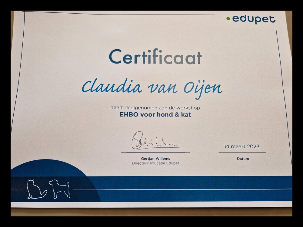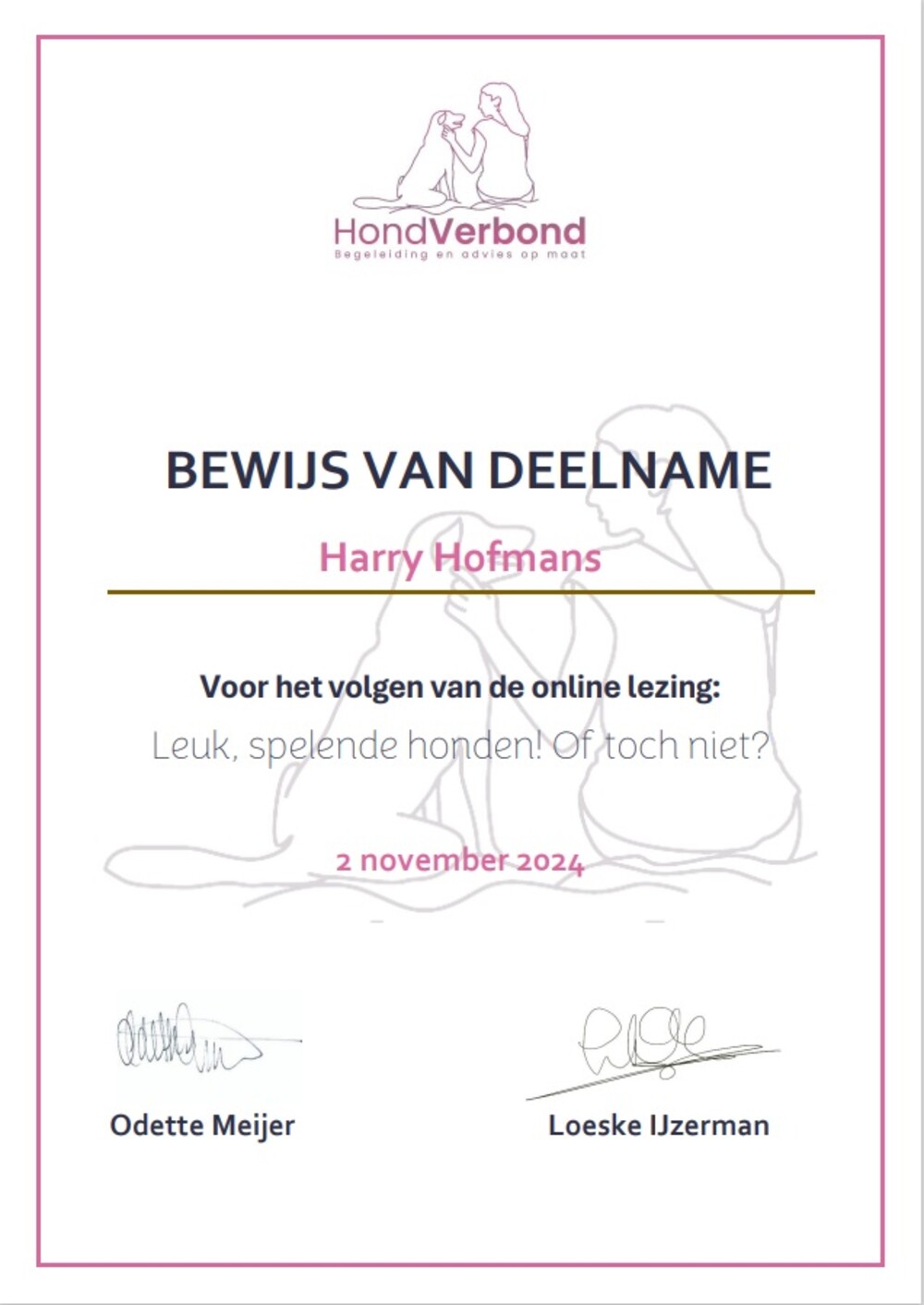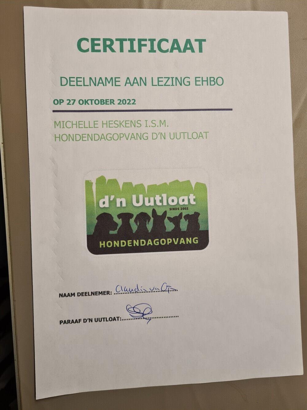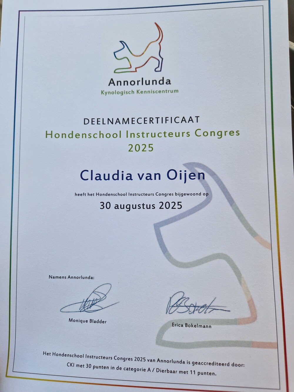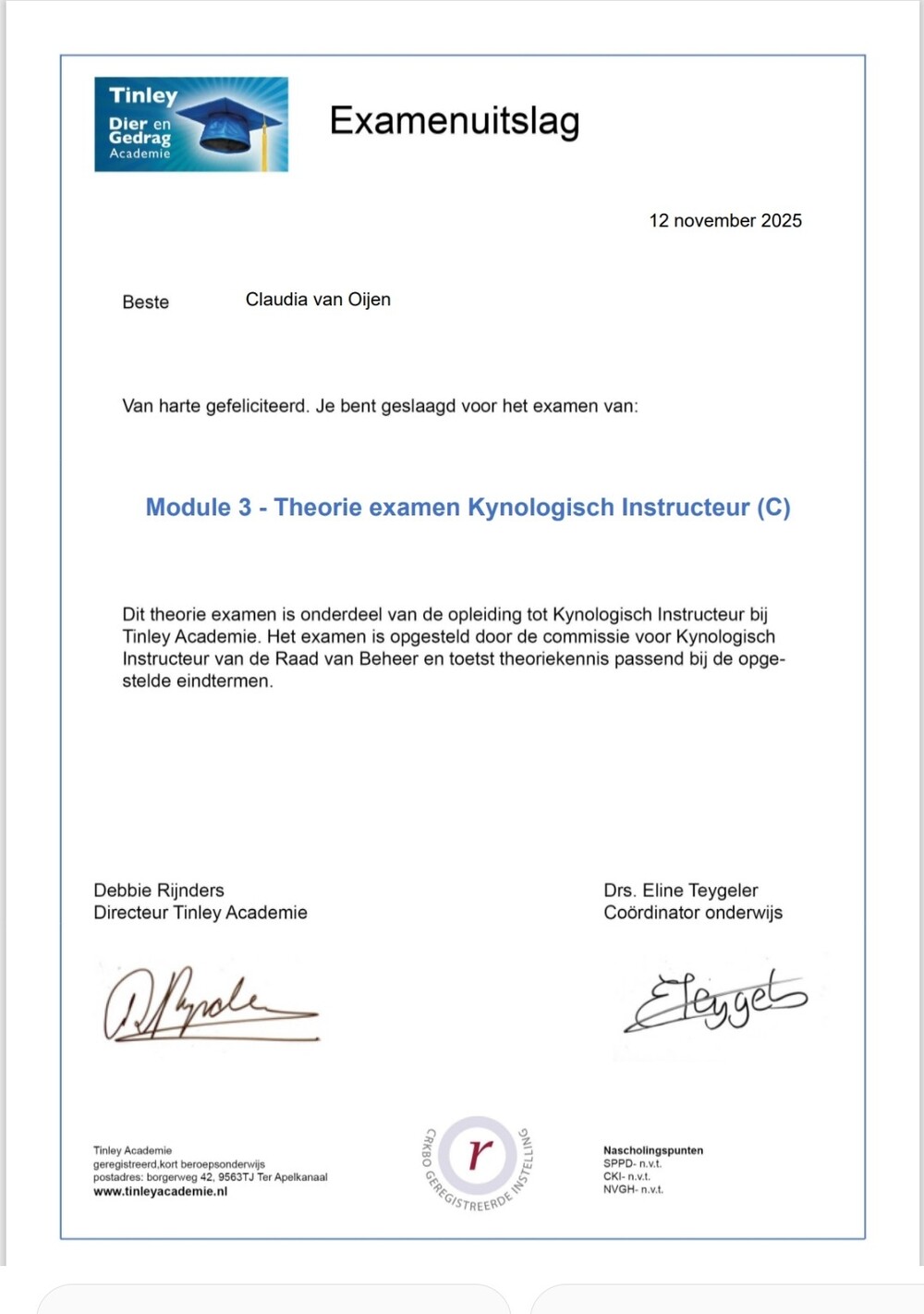 Kynologie module 1B Gedrag en leren: 4 april 2025: geslaagd met certificaat