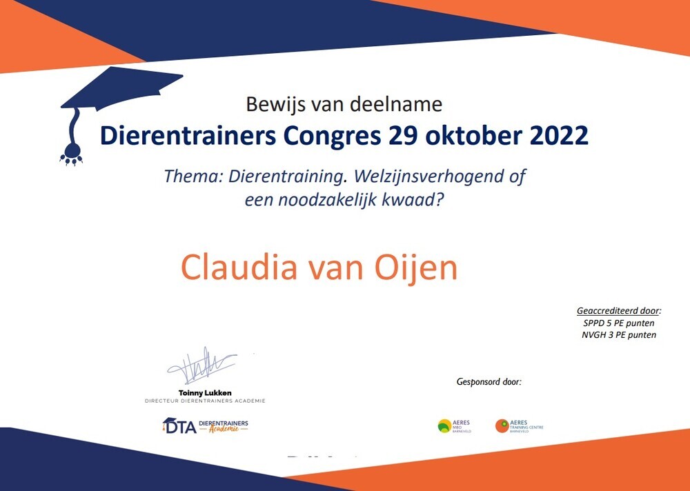 Kynologie module A: Ethologie hond - 22 februari 2022: geslaagd met certificaat