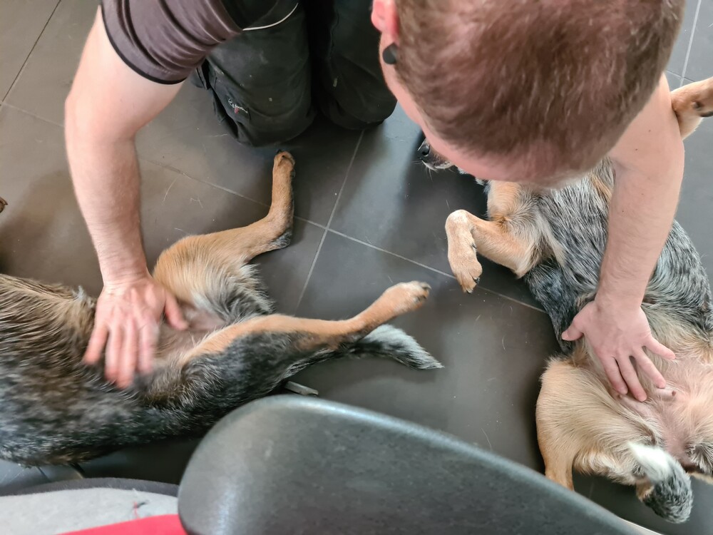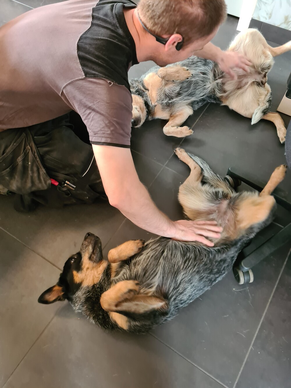 We relaxen en we zijn actief bezig op zijn tijd: corona maatregelen versoepelen weer, dus we mogen weer van alles! Hondenschool, maar ook sportschool, dus Harry en Claudia, we zijn bezig met sportdoelen, oftewel actief bezig zijn, niet alleen met en voor de honden maar ook voor onszelf. Dus op dit moment is het voor de honden belangrijk dat ze "nieuw" speelgoed hebben zodat ze goed focussen op de hondenschool. Ze belonen daar, op dit moment, goed gedrag door middel van spelen, positieve aandacht en niet door snoepjes. Kortom, wij, als honden eigenaren: vinden het natuurlijk ook leuk om even de honden extra aandacht te geven. Meestal doen we dat door "op pad" te gaan met hun, vandaag doen we dat door "speelgoed" en natuurlijk hier en daar wat lekkers.