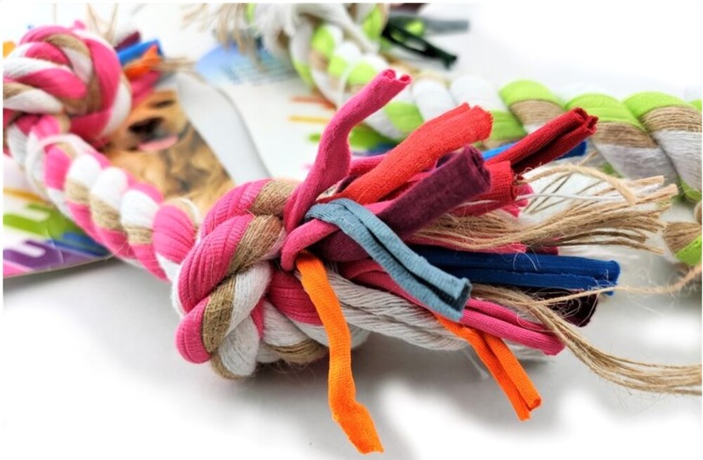 Als katoenvezels afbreken doen ze dat in hele kleine stukjes die daardoor niet snel schade veroorzaken als ze worden ingeslikt en door het spijsverteringskanaal gaan. Dat maakt katoenen kauwspeeltjes voor honden een veilige keuze.