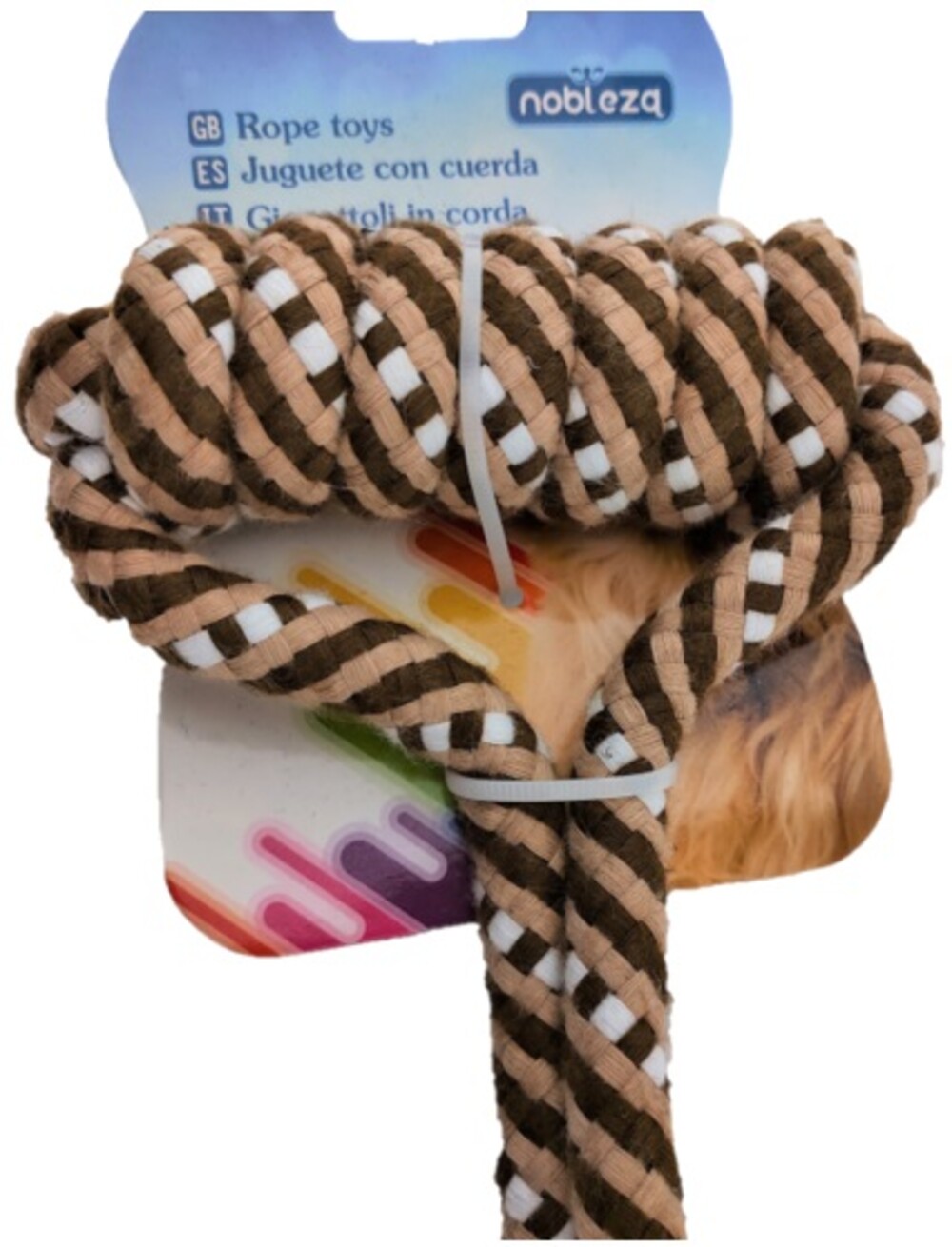 Dit hondenspeeltje is gemaakt van een sterk gevlochten katoenen touw en voorzien van een sterk katoenen olijf.
