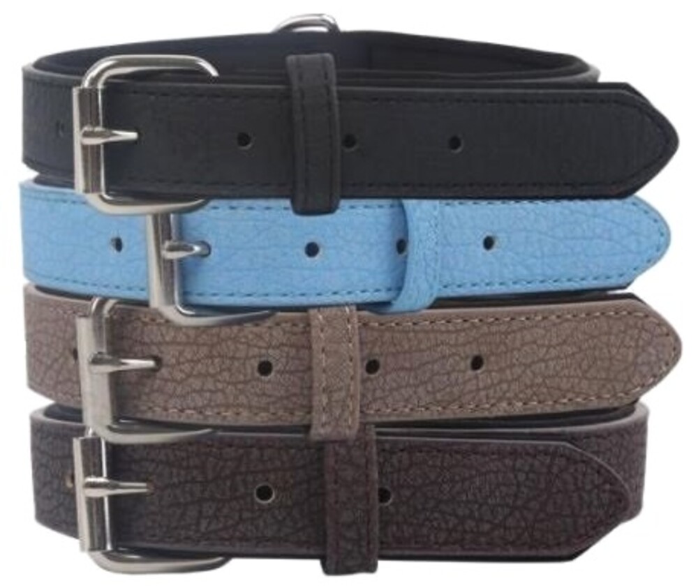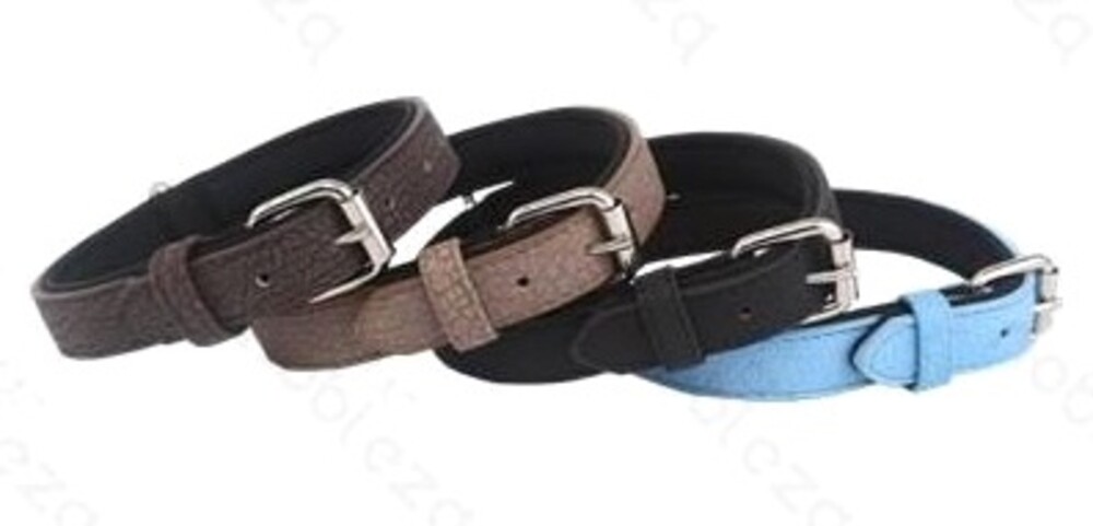 Zeer mooie leder look hondenhalsband in verschillende kleuren. Een voordeel van kunstleder vergeleken met leer is dat deze geen vocht opneemt en dus ook niet kan verkleuren of schimmelen.